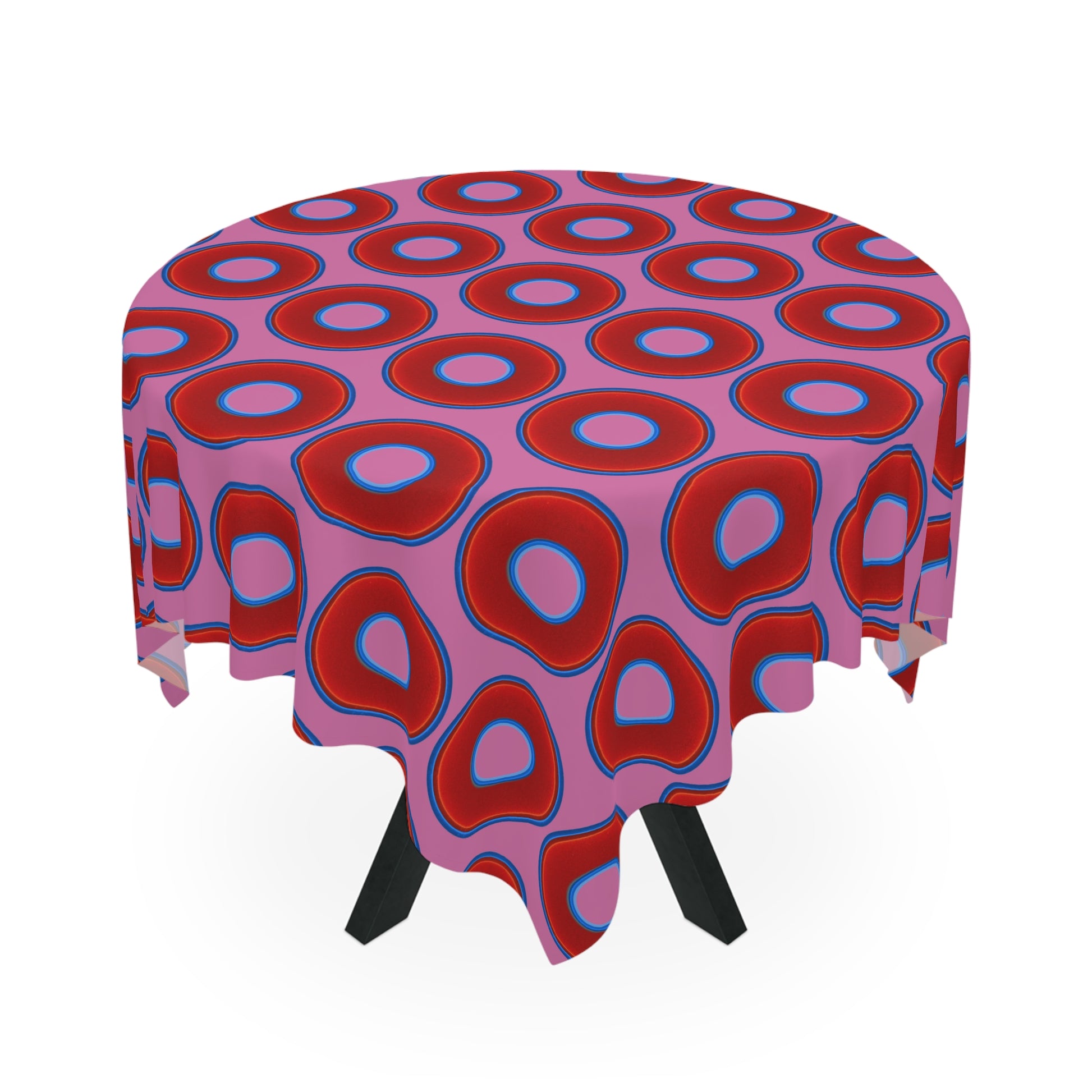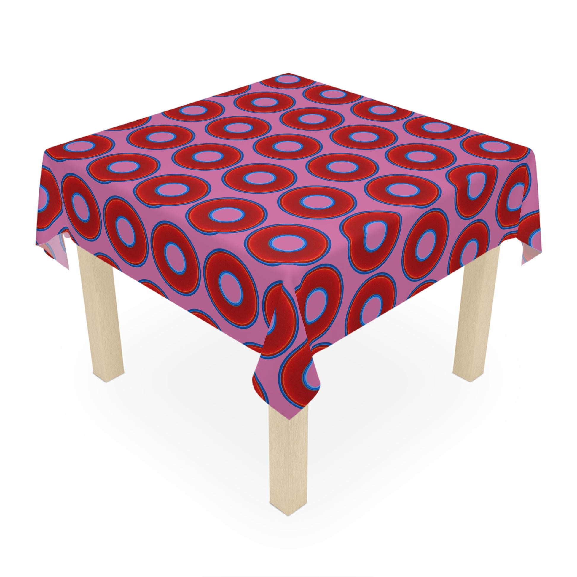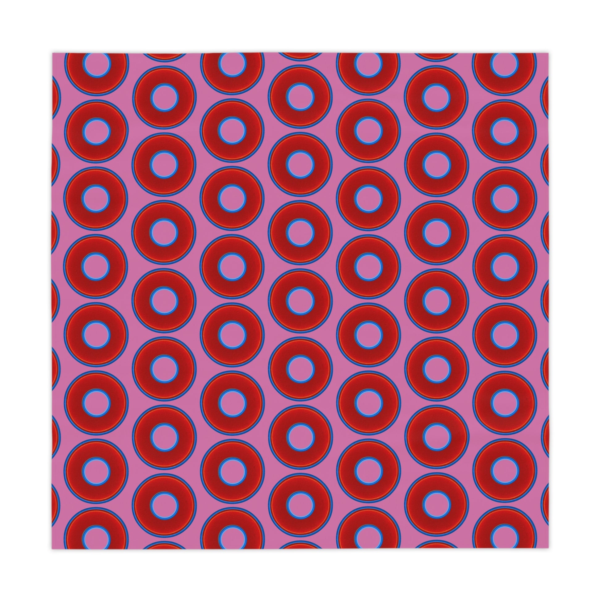 Lumpy Tablecloth - 55.1" x 55.1" - vivid red donuts w/pink background