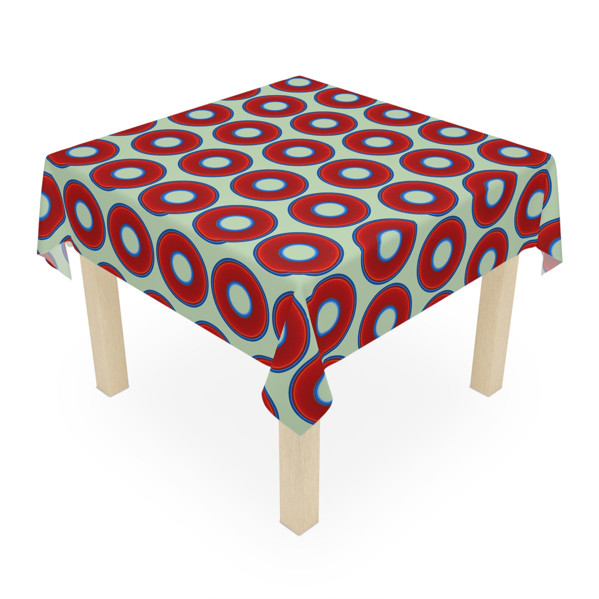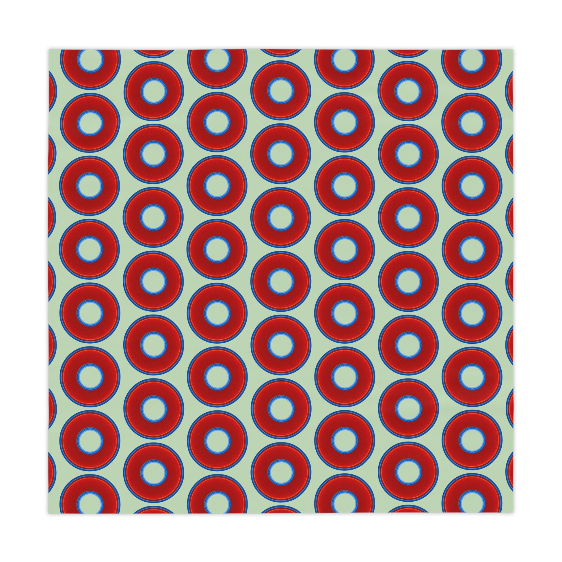 Lumpy Tablecloth - 55.1" x 55.1" - vivid red donuts w/seafoam background