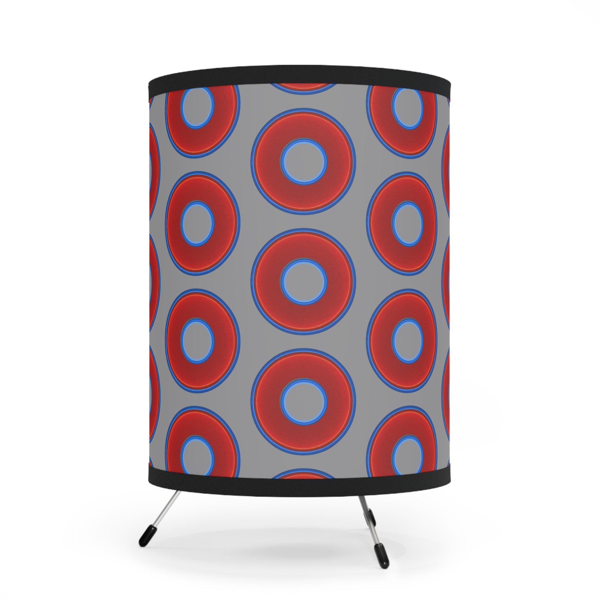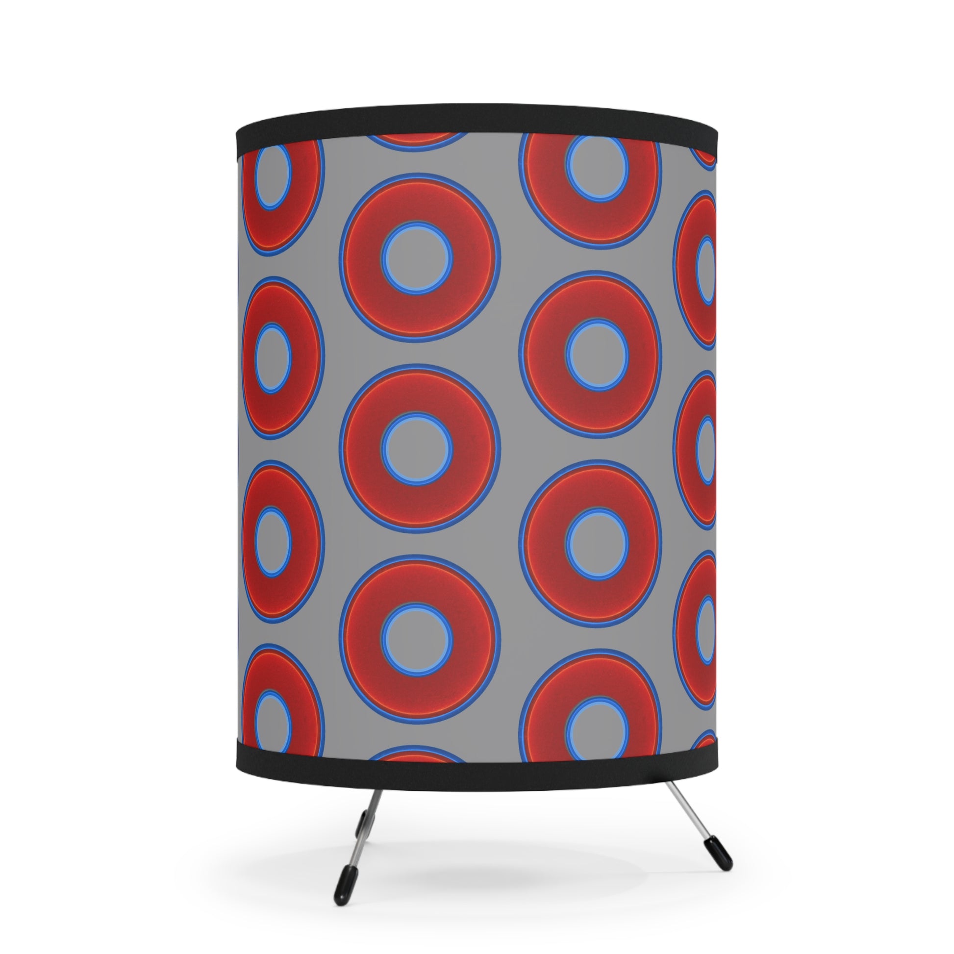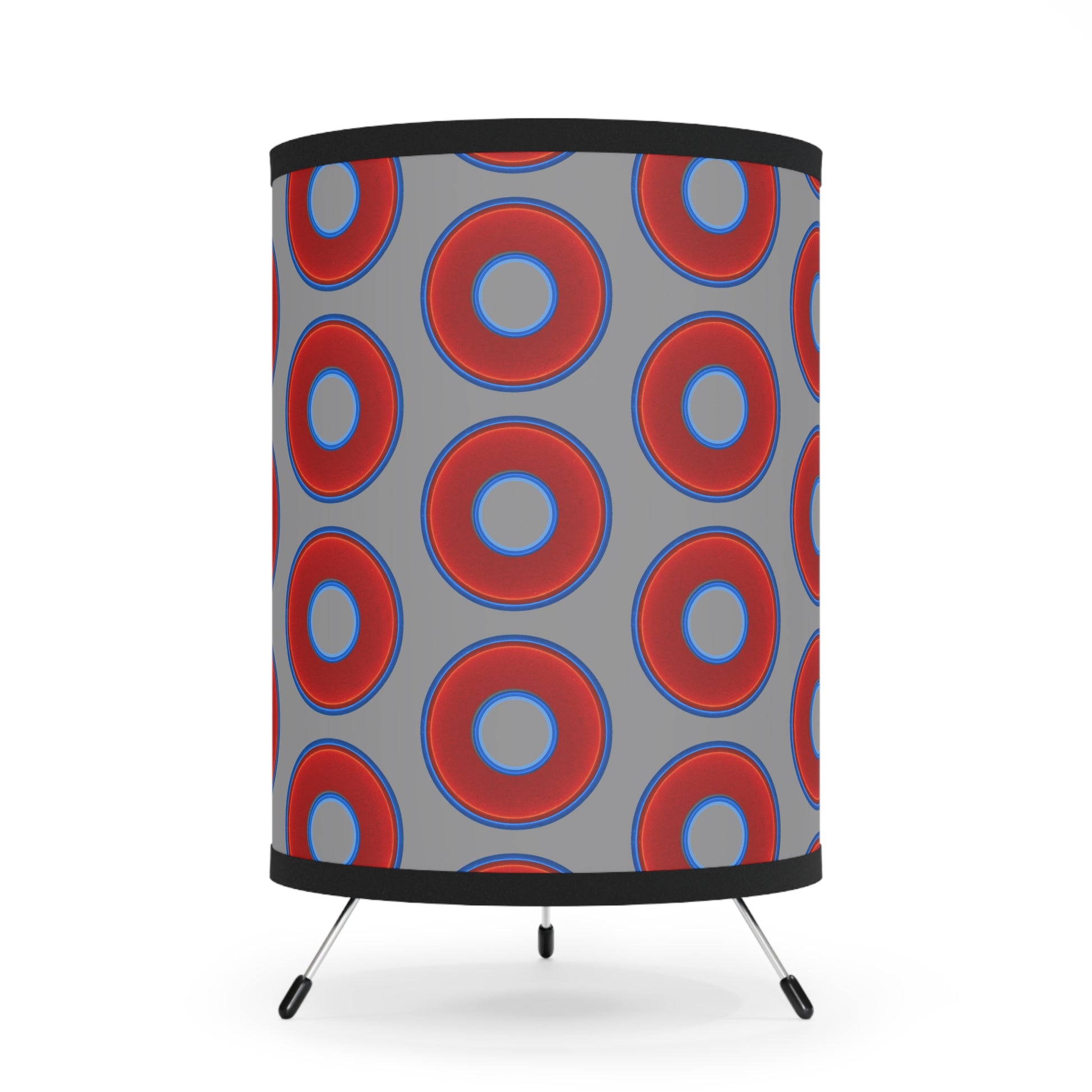 Lumpy Tripod Donut Lamp - vivid red donuts w/gray background