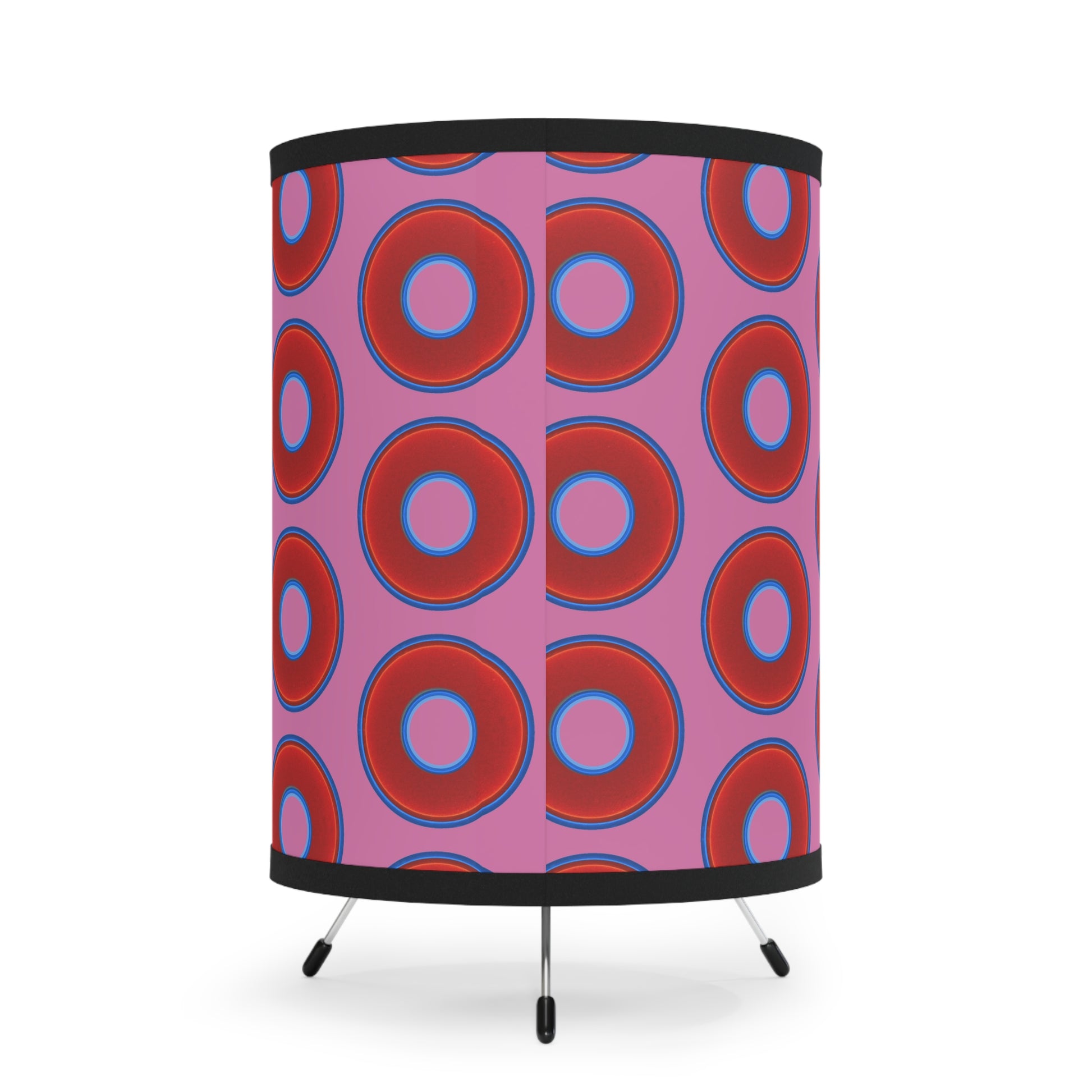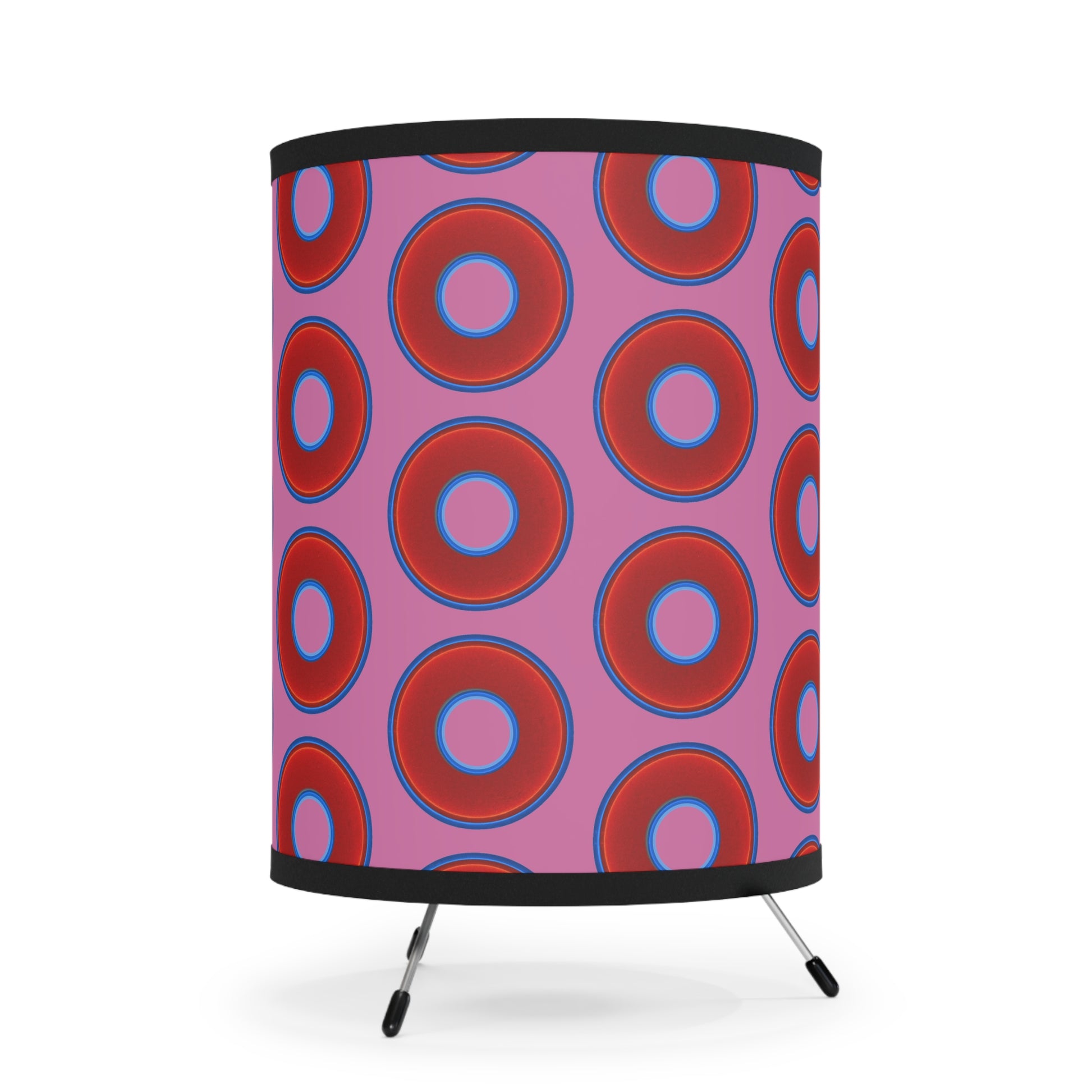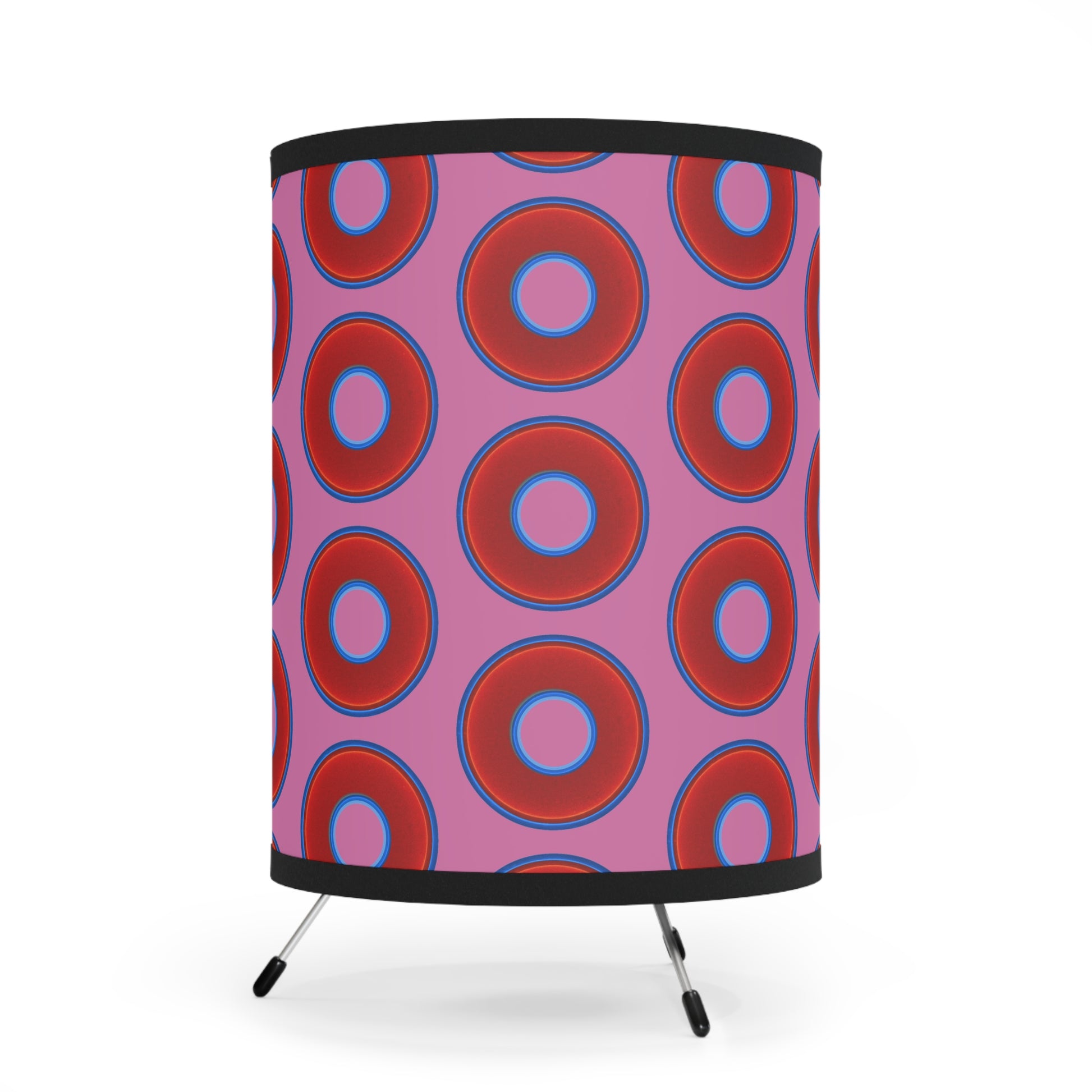 Lumpy Tripod Donut Lamp - vivid red donuts w/pink background
