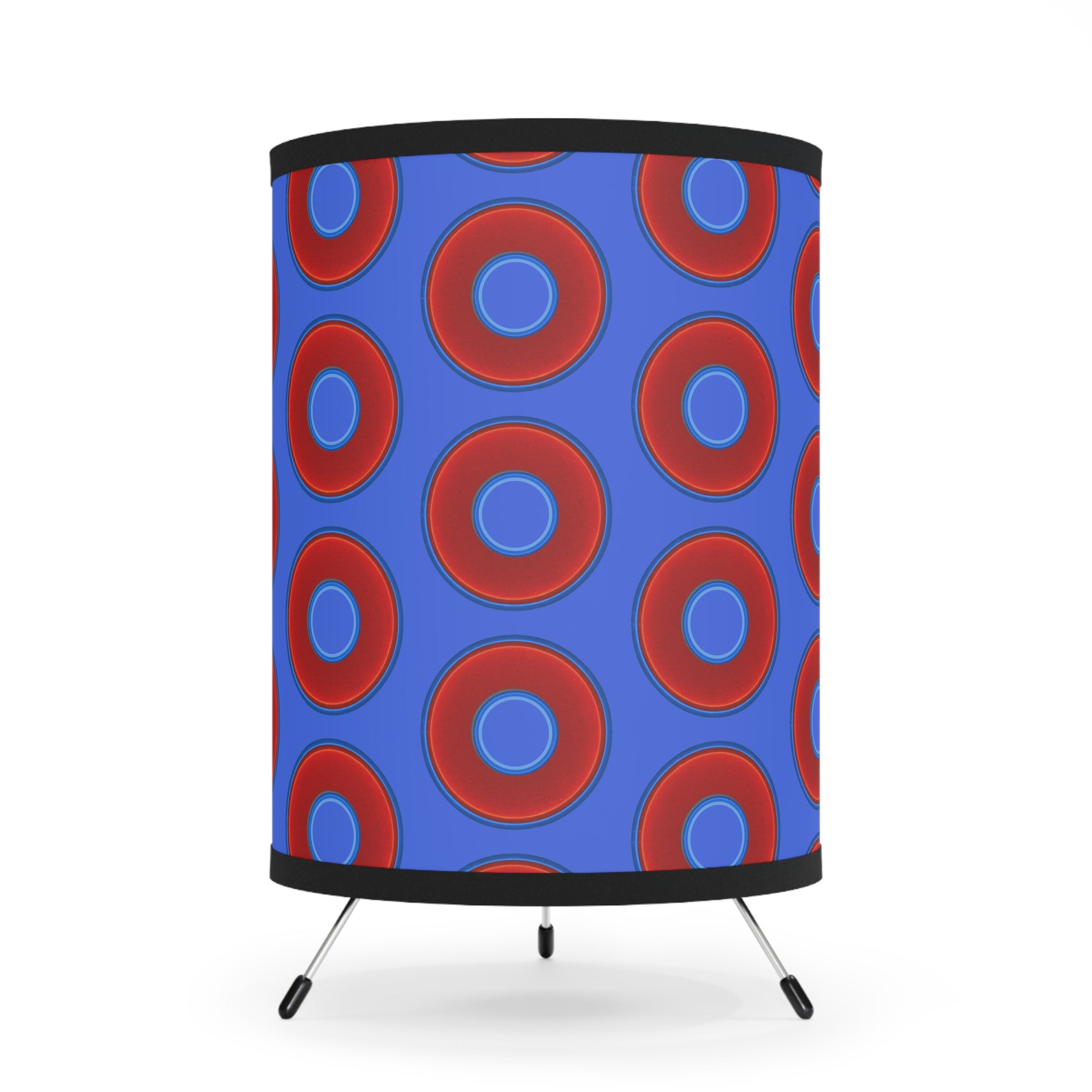 Lumpy Tripod Donut Lamp - vivid red donuts w/royal blue background