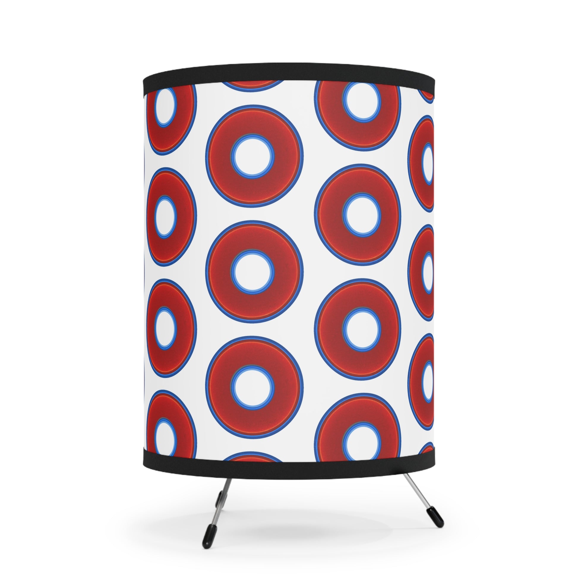Lumpy Tripod Donut Lamp - vivid red donuts w/white background