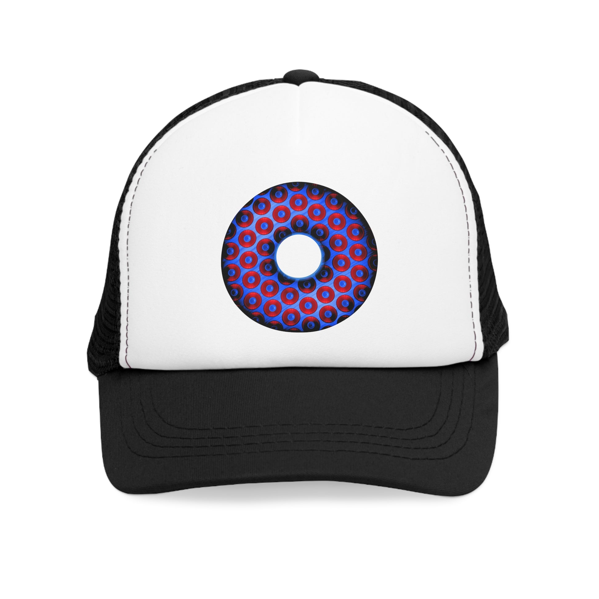 Lumpy Trucker Hat - "Paradoxical Donut - variant 3 - bling donut print " red/blue
