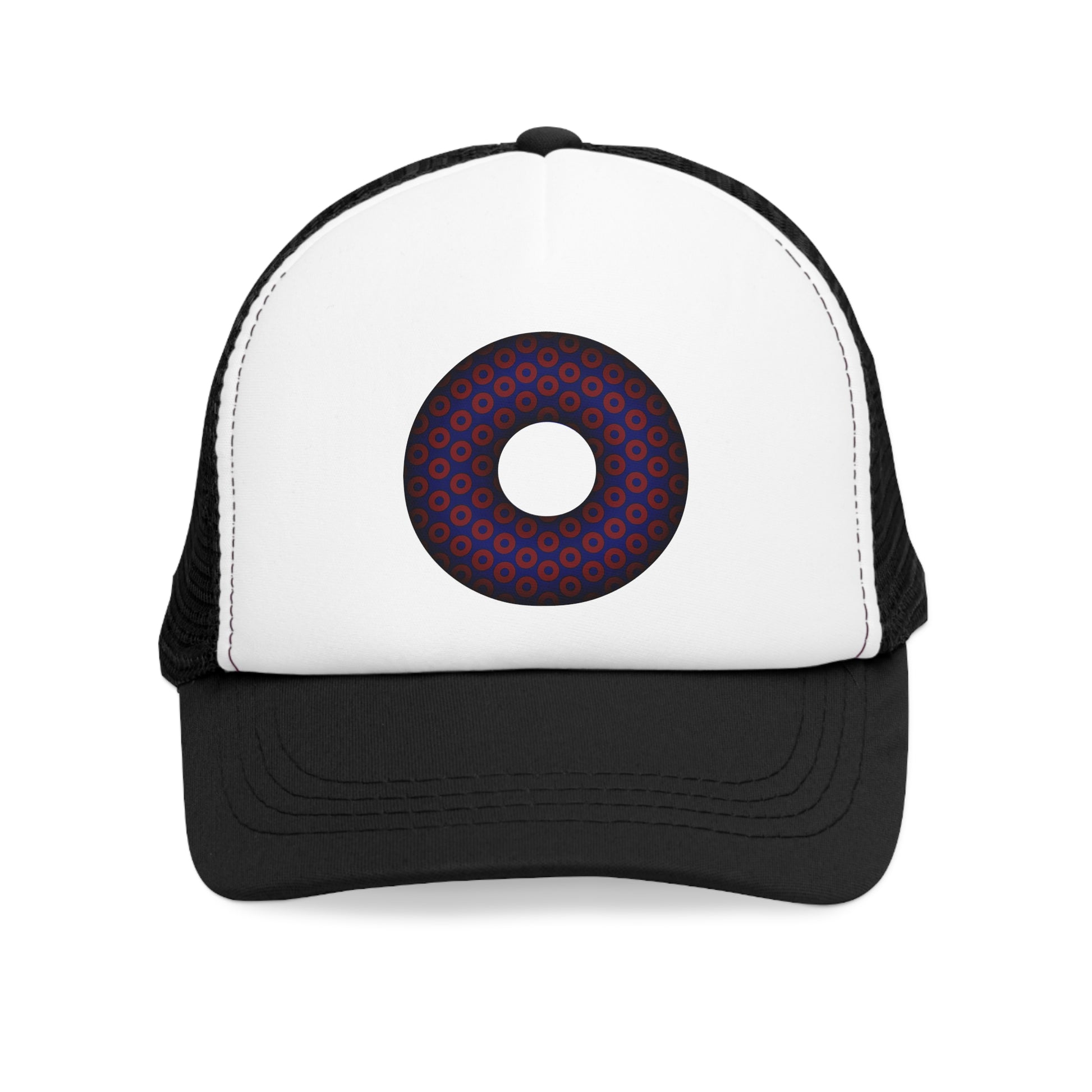 Lumpy Trucker Hat - "Paradoxical Donut - variant 5 - traditional print - red/blue