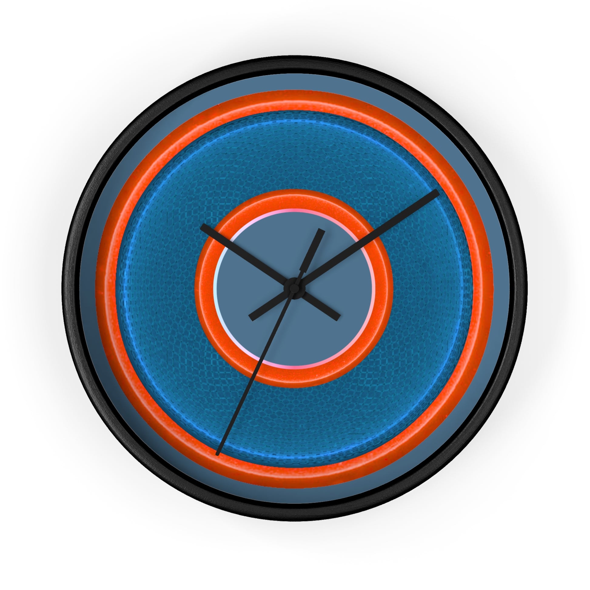 Lumpy Wall Clock - blue rustic donut w/light red/orange edging - variant 6 w/steel blue background