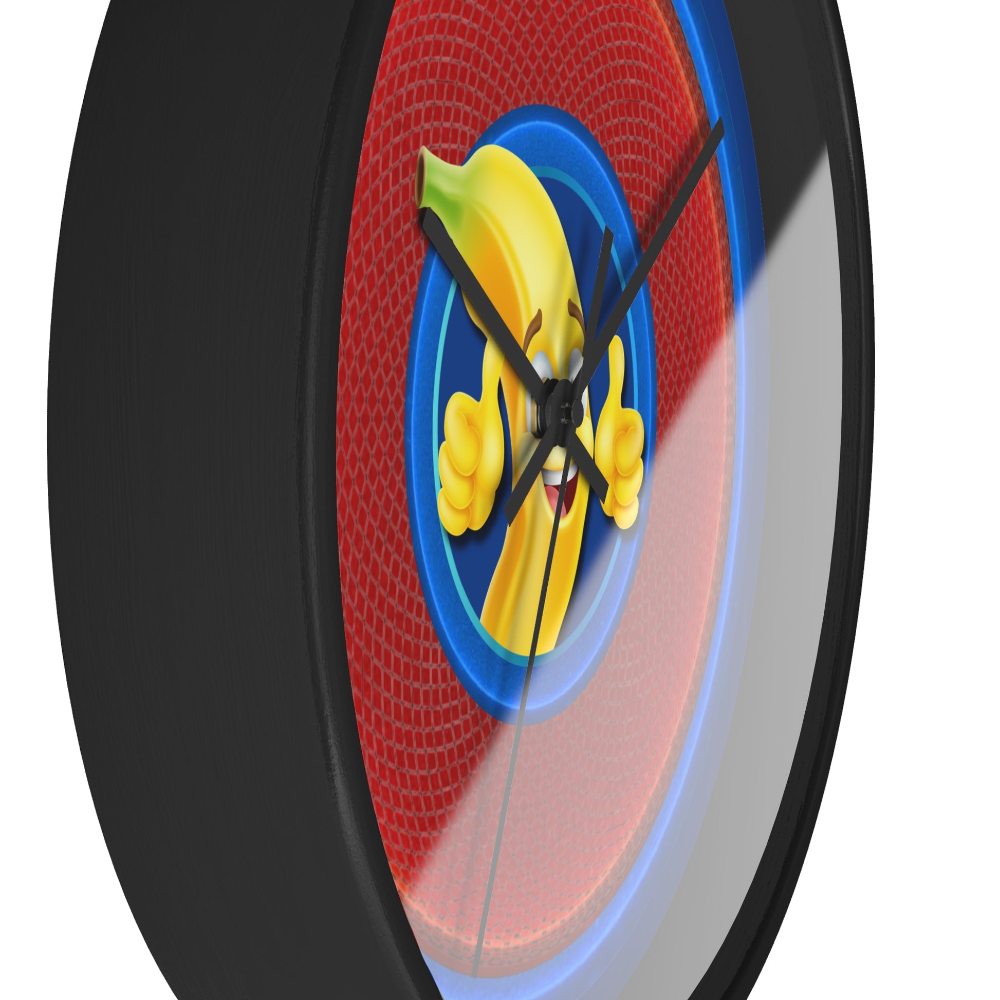 Lumpy Wall Clock - "Dis Sheet, It's Bananas" - variant 1 - red rustic donut w/dark blue background