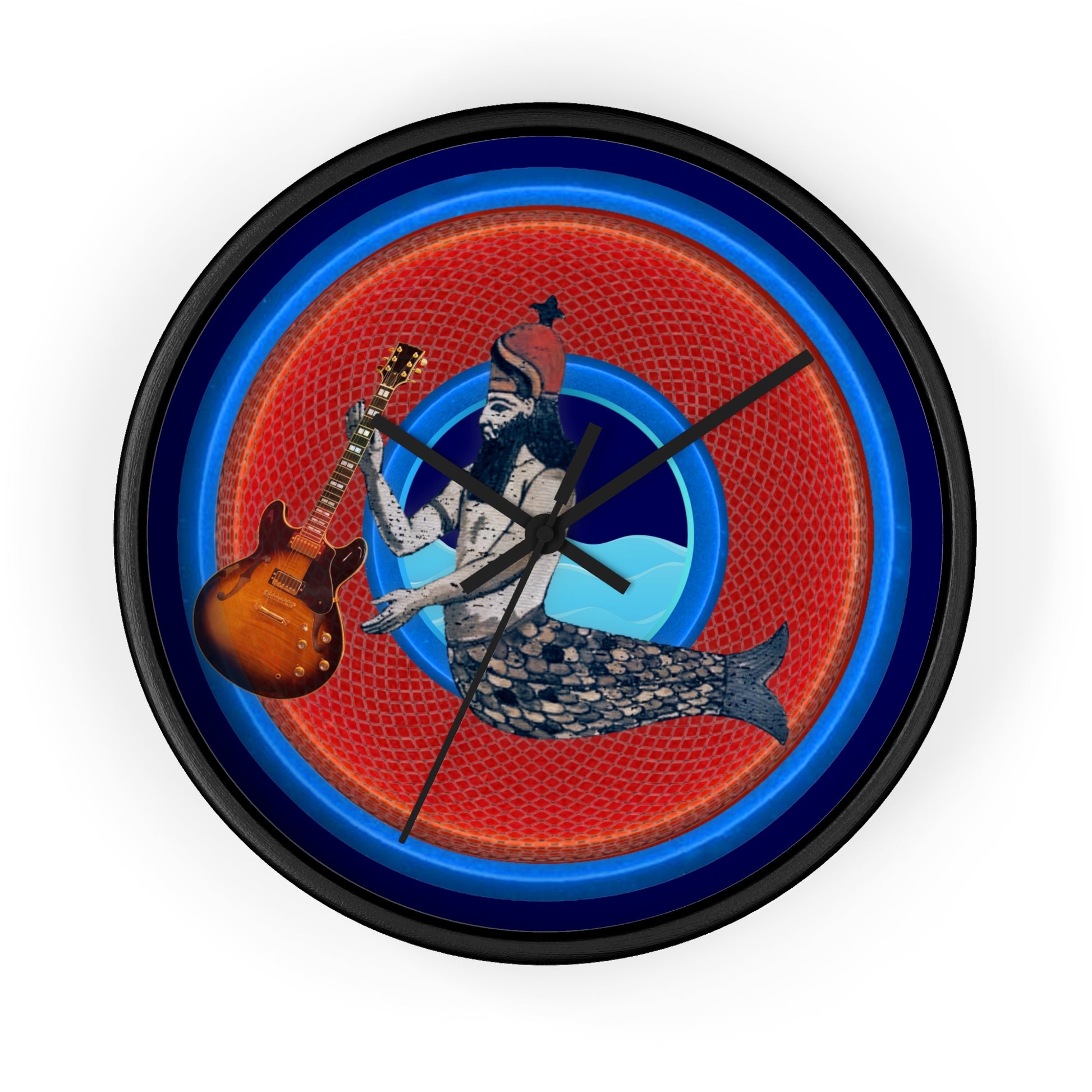 Lumpy Wall Clock - "Doggone Dagon Donut Clock" - variant 2 - rustic red/blue donut w/navy blue background