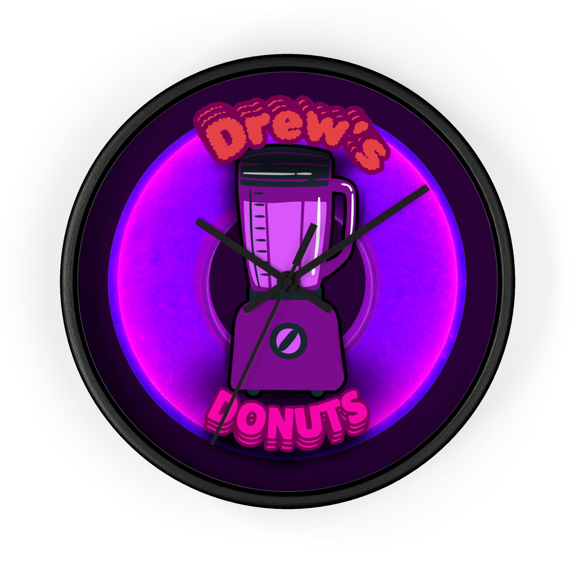 Lumpy Wall Clock - "Drew's Clock not his Blender" - vivid magenta donut w/midnight purple background [*charitable donut]