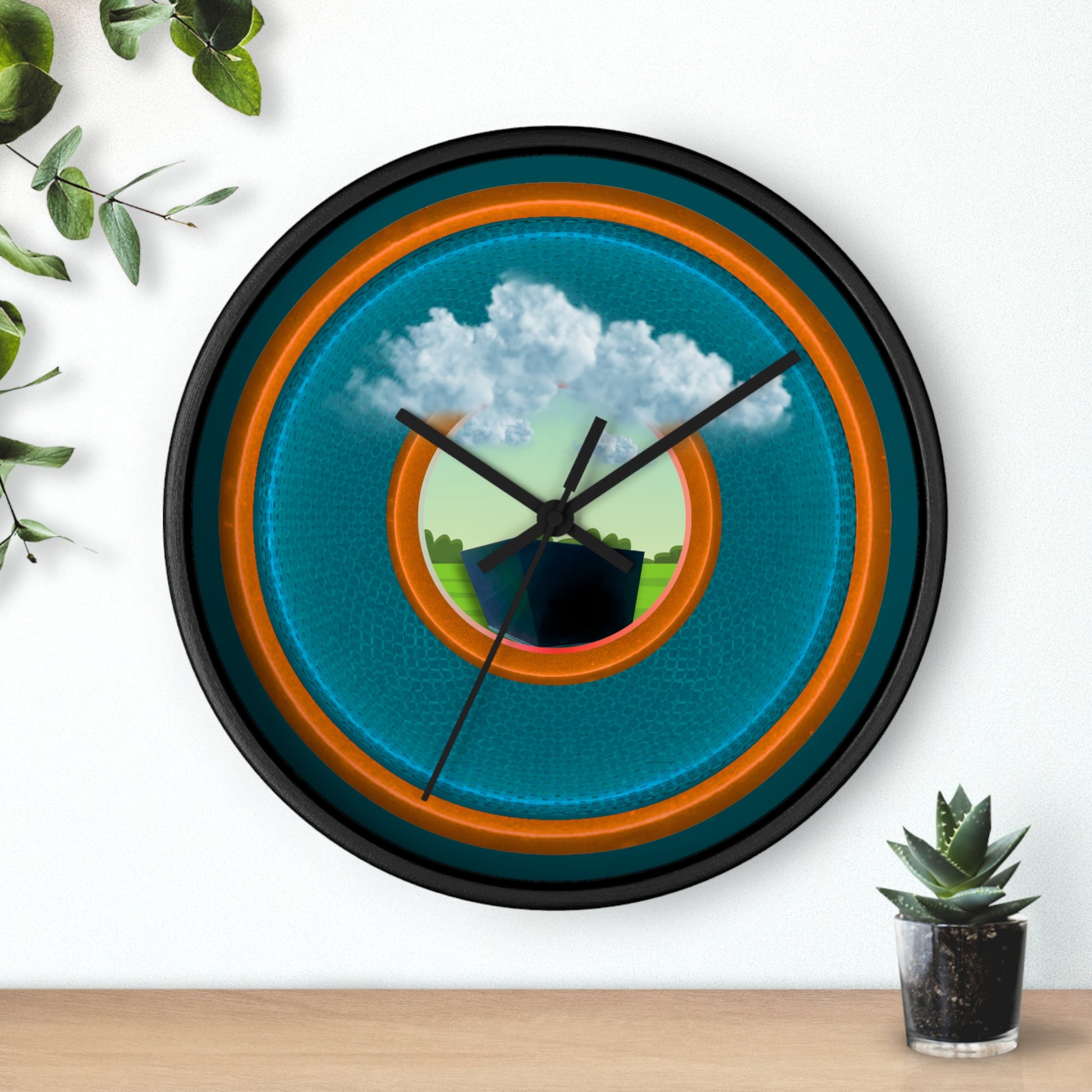 Lumpy Wall Clock - "Got Rhombus?" - variant 3 - aquamarine blue/orange rustic donut w/midnight green background