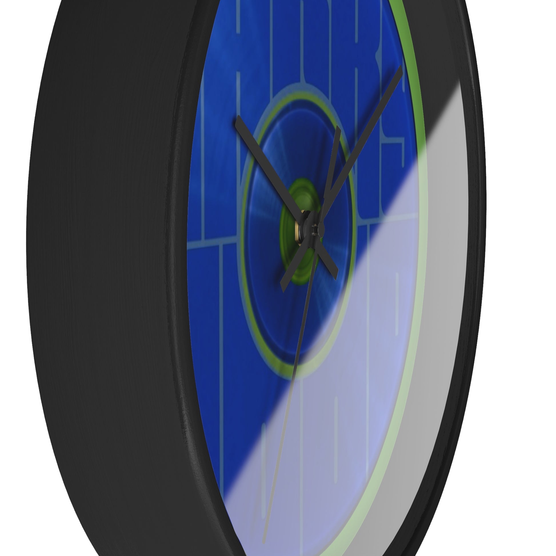 Lumpy Wall Clock - "Harry Hoodlum Donut Clock" - variant 5 - blue vivid/word donut w/light green background