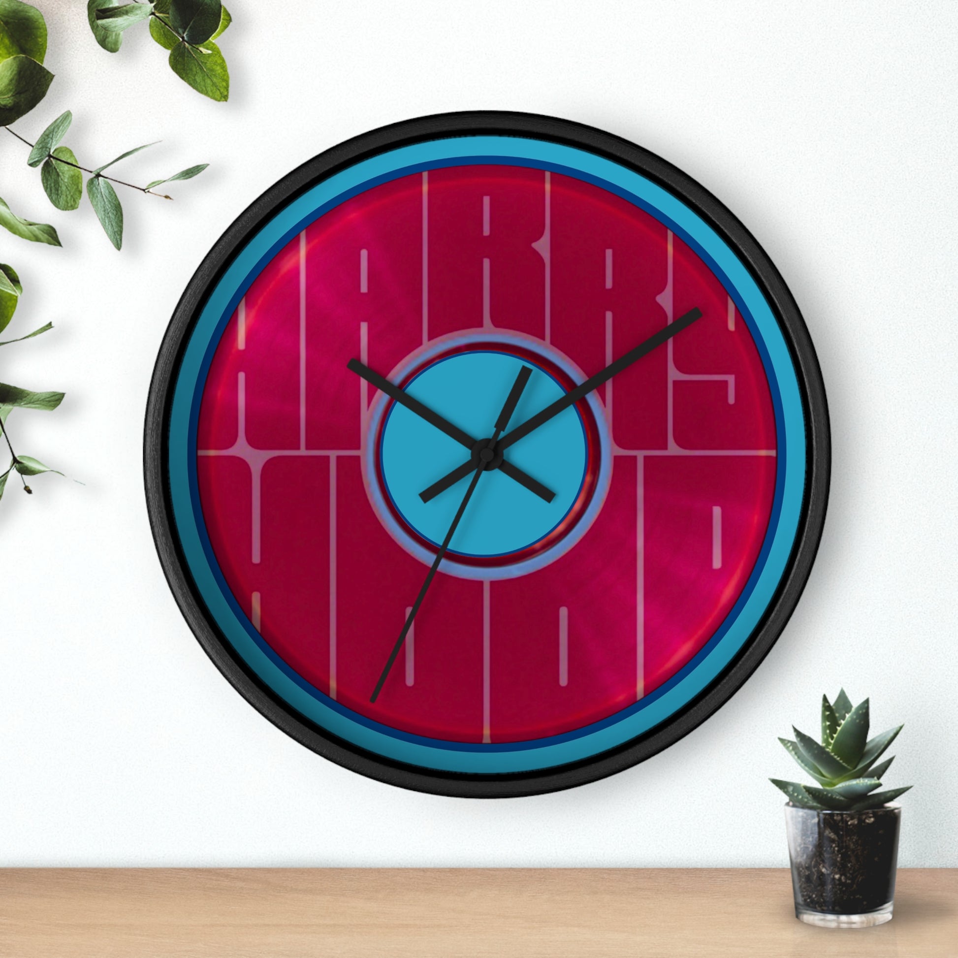 Lumpy Wall Clock - "Harry's Unofficial Donut Clock" - variant 1 - vivid magenta/purple word donut w/turquoise background