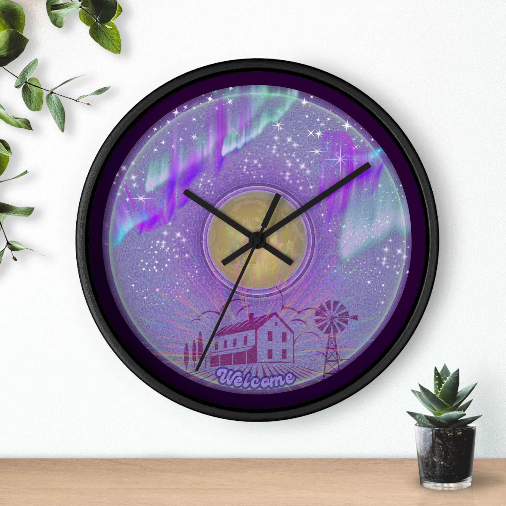 Lumpy Wall Clock - "Welcome, This is your Donut Clock" - variant 1 - vivid purple donut w/midnight purple background