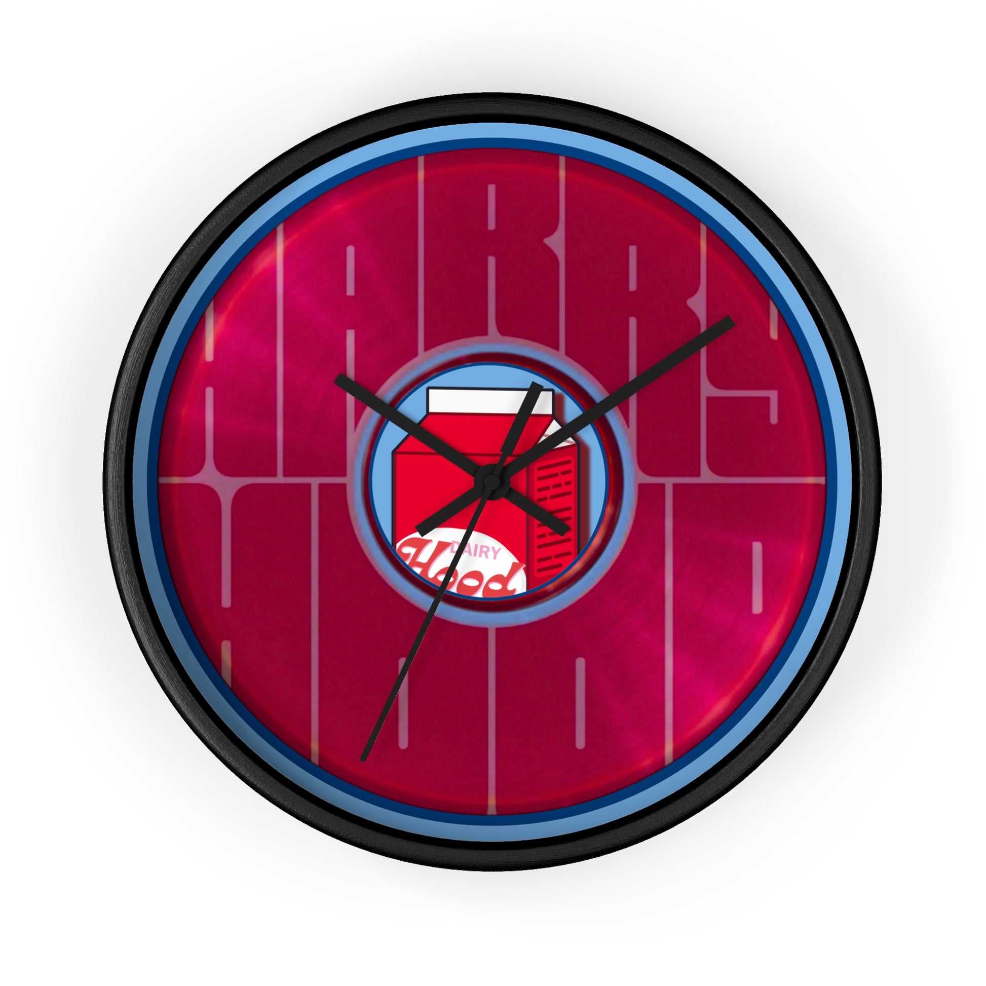 Lumpy Wall Clock - "Harry's Unofficial Donut Clock" - variant 2 - vivid magenta/purple word donut w/light blue background