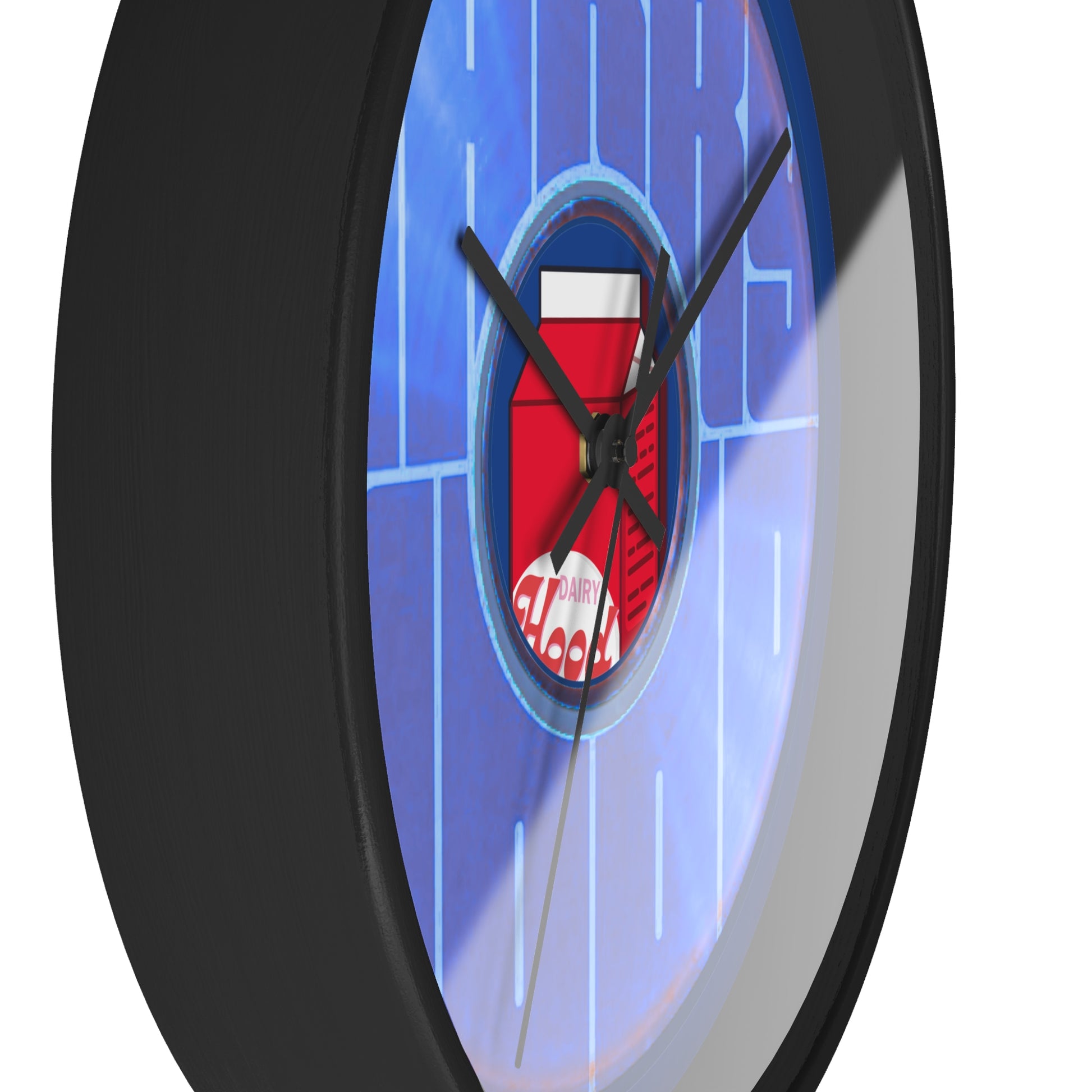 Lumpy Wall Clock - "Harry's Unofficial Donut Clock" - variant 3 - vivid blue/purple word donut w/dark blue background