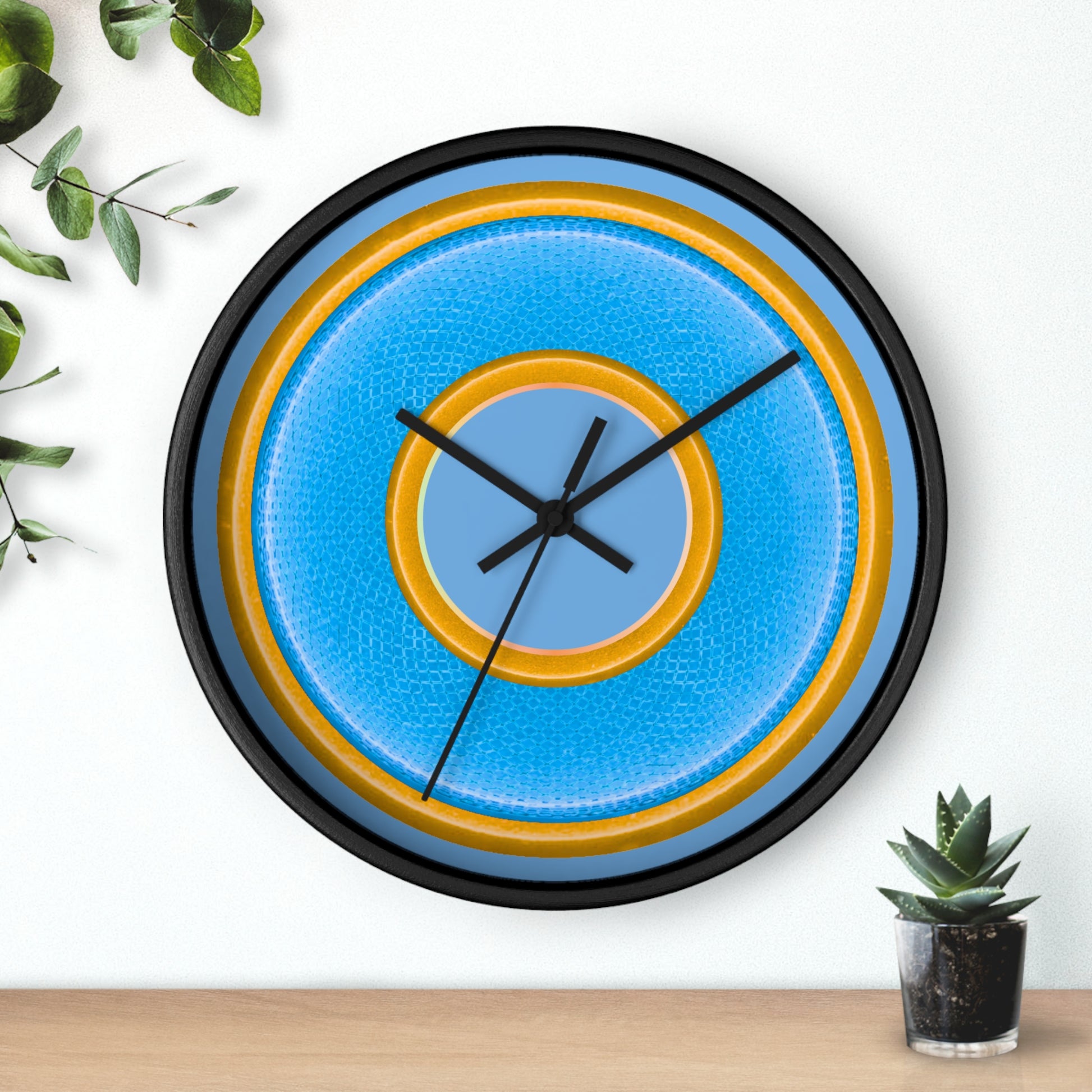 Lumpy Wall Clock - light blue rustic donut w/yellow edging - variant 3 w/light blue background