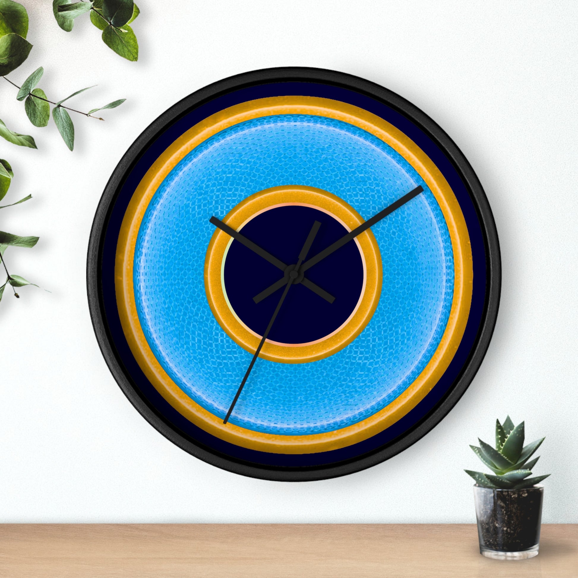 Lumpy Wall Clock - light blue rustic donut w/yellow edging - variant 7 w/midnight blue background