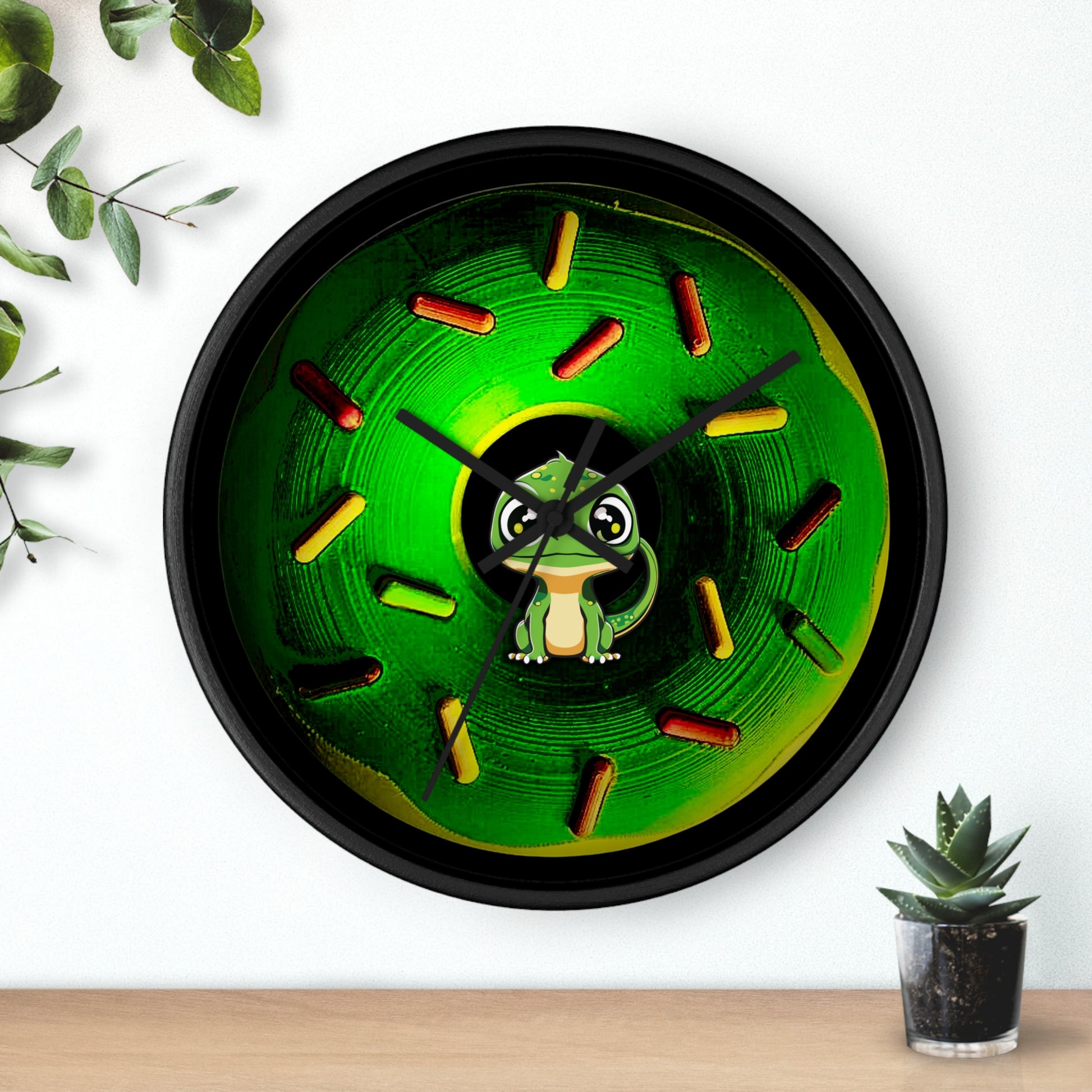Lumpy Wall Clock - "Little Baby Rutherford's Donut Clock" - green retro donut w/sprinkles & black background