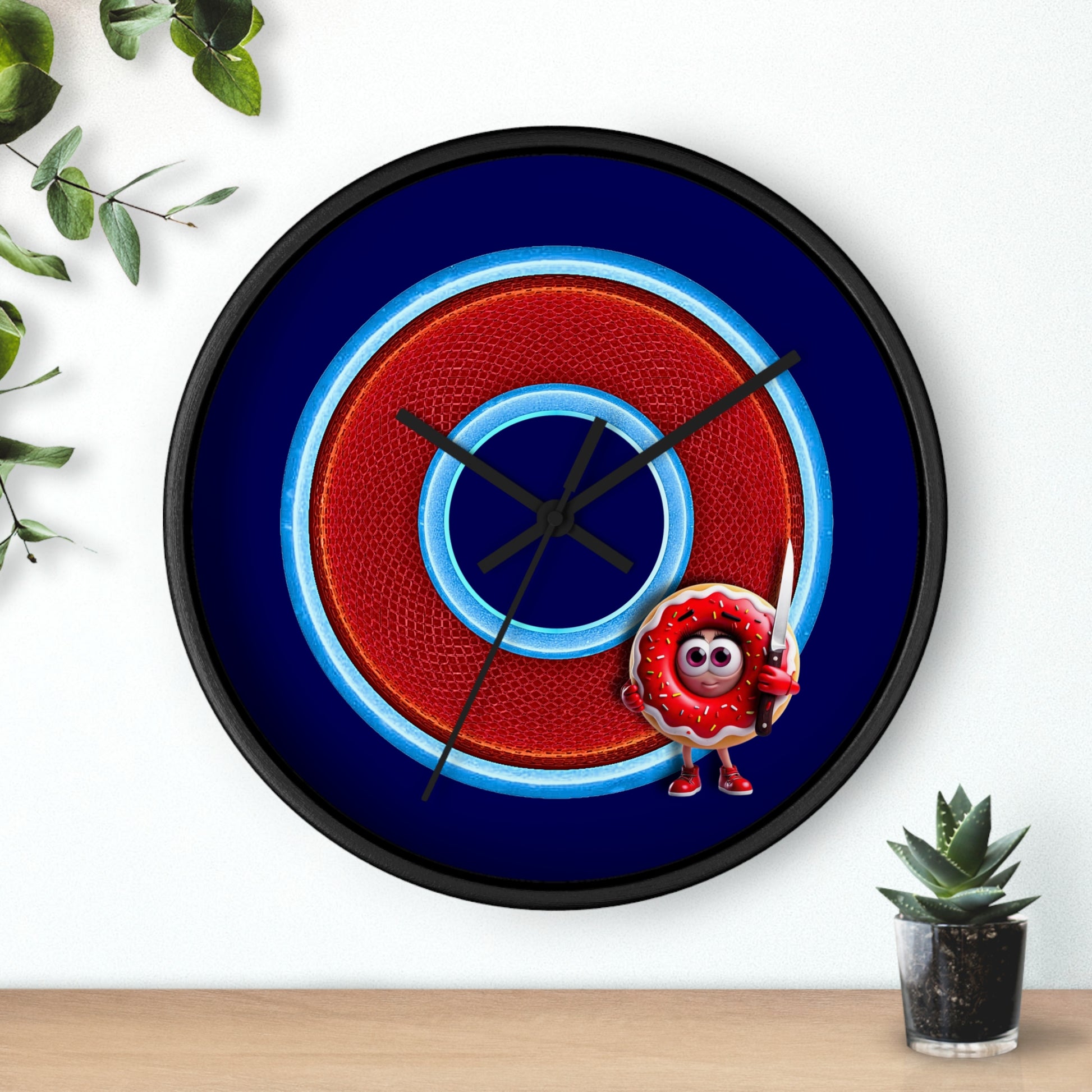 Lumpy Wall Clock - "My Phriend the Donut" - variant 1 - rustic red donut w/navy blue background