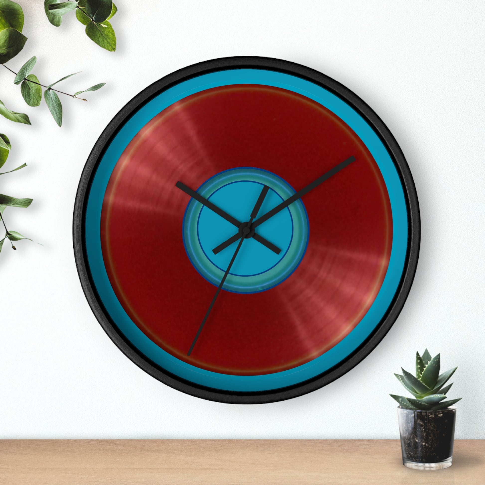 Lumpy Wall Clock - "Plain Vivid Donut" - dark red donut w/aquamarine blue background