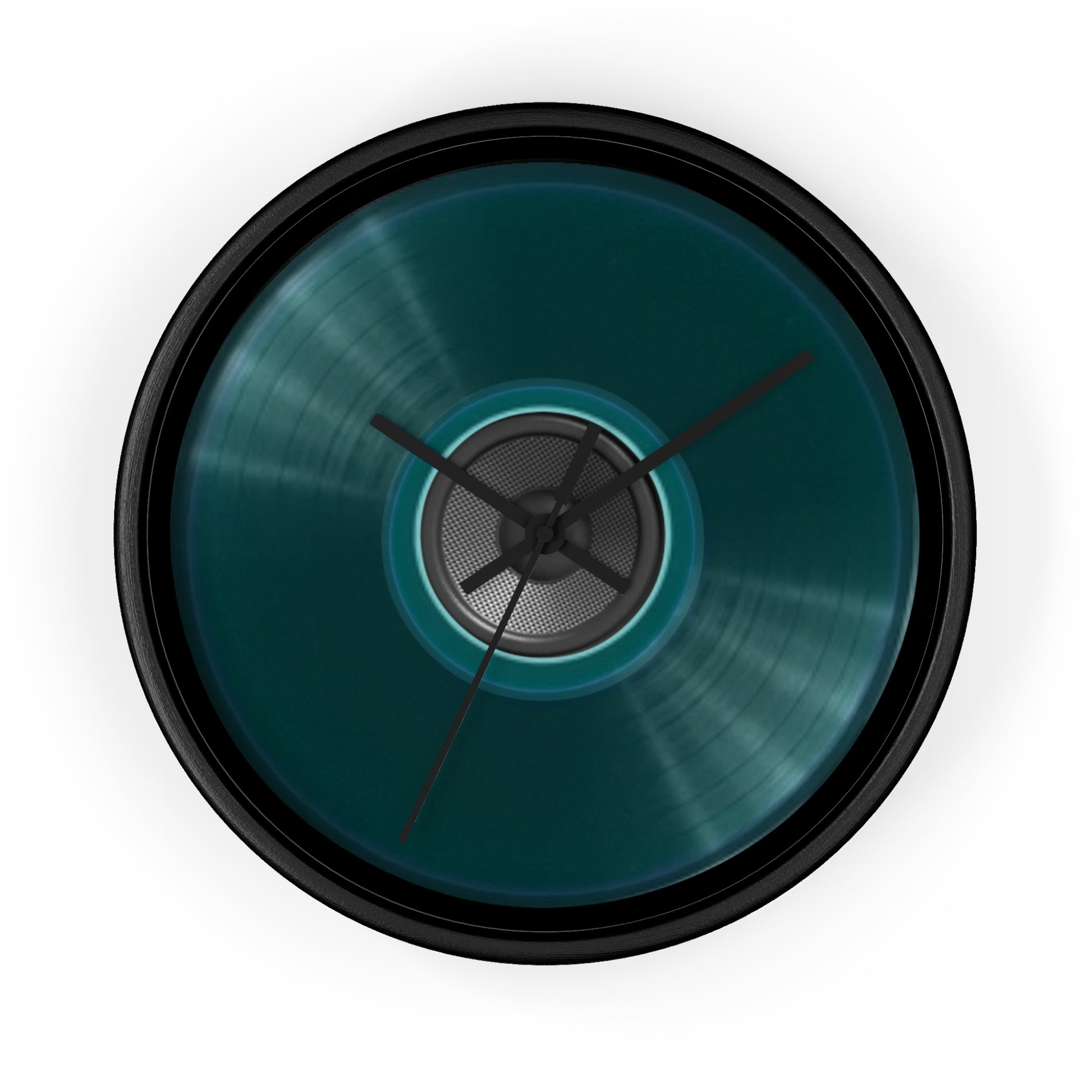 Lumpy Wall Clock - "Record/Speaker Donut" vivid dark teal donut w/black background