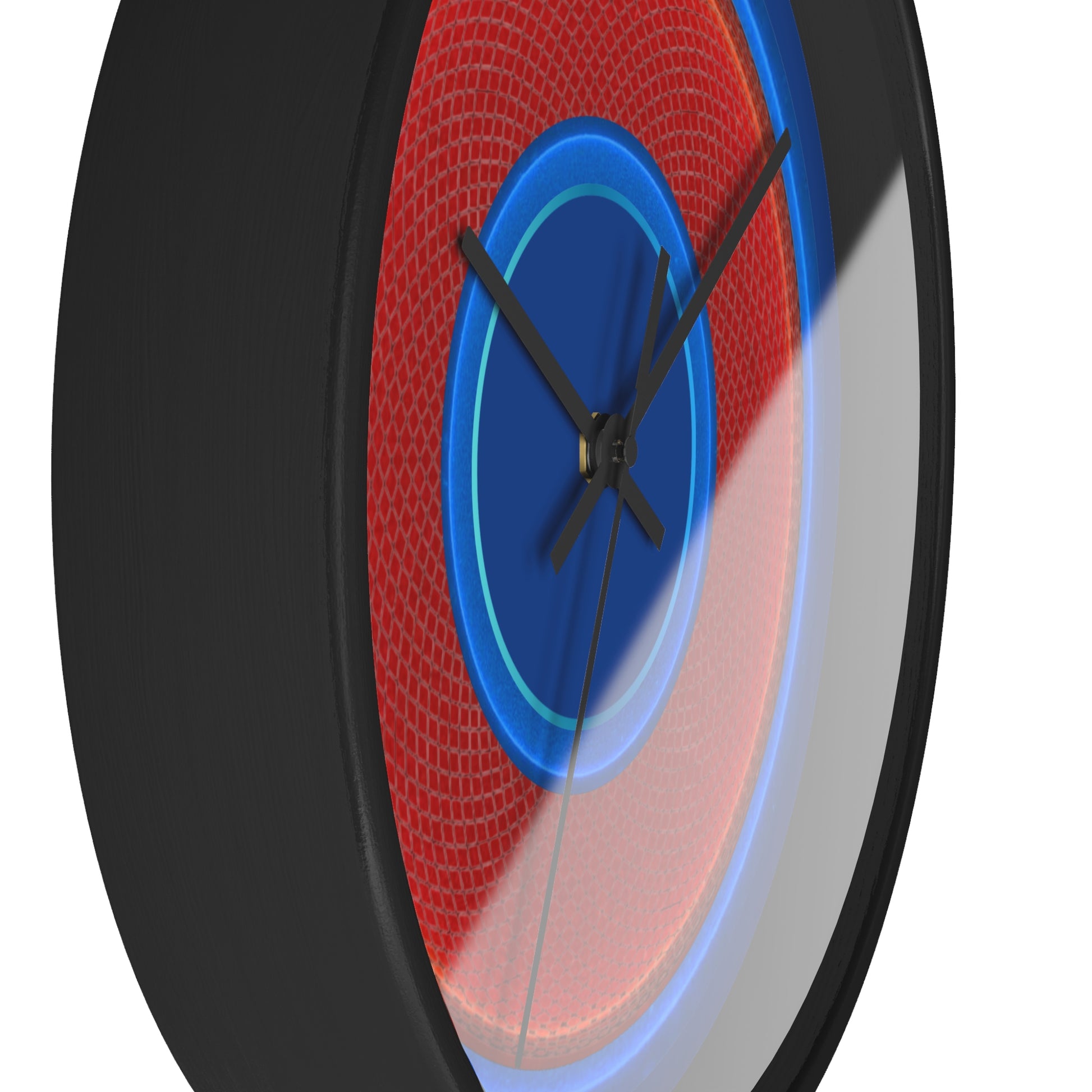 Lumpy Wall Clock - red rustic donut w/light blue edging - variant 2 w/dark blue background