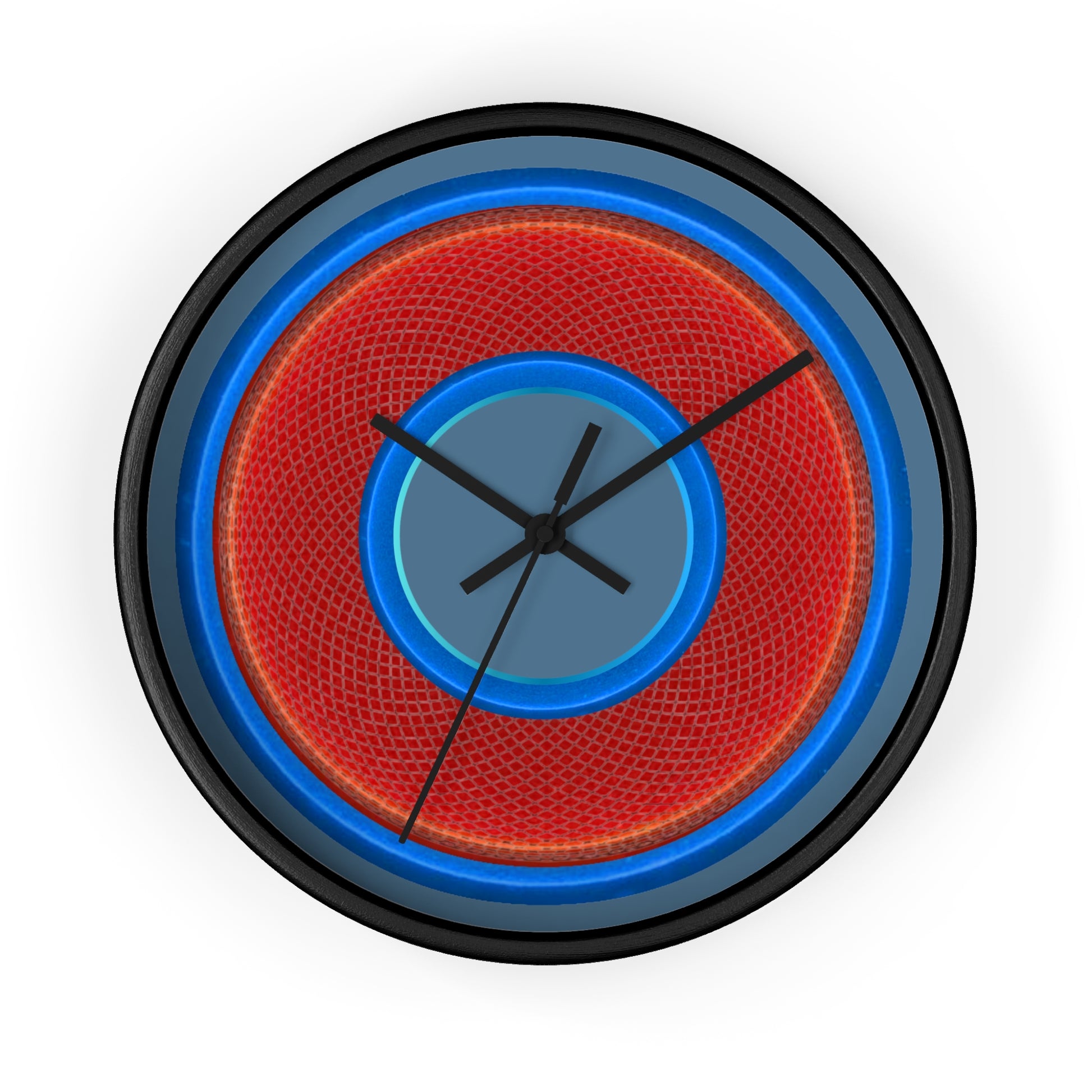 Lumpy Wall Clock - red rustic donut w/light blue edging - variant 5 w/steel blue background