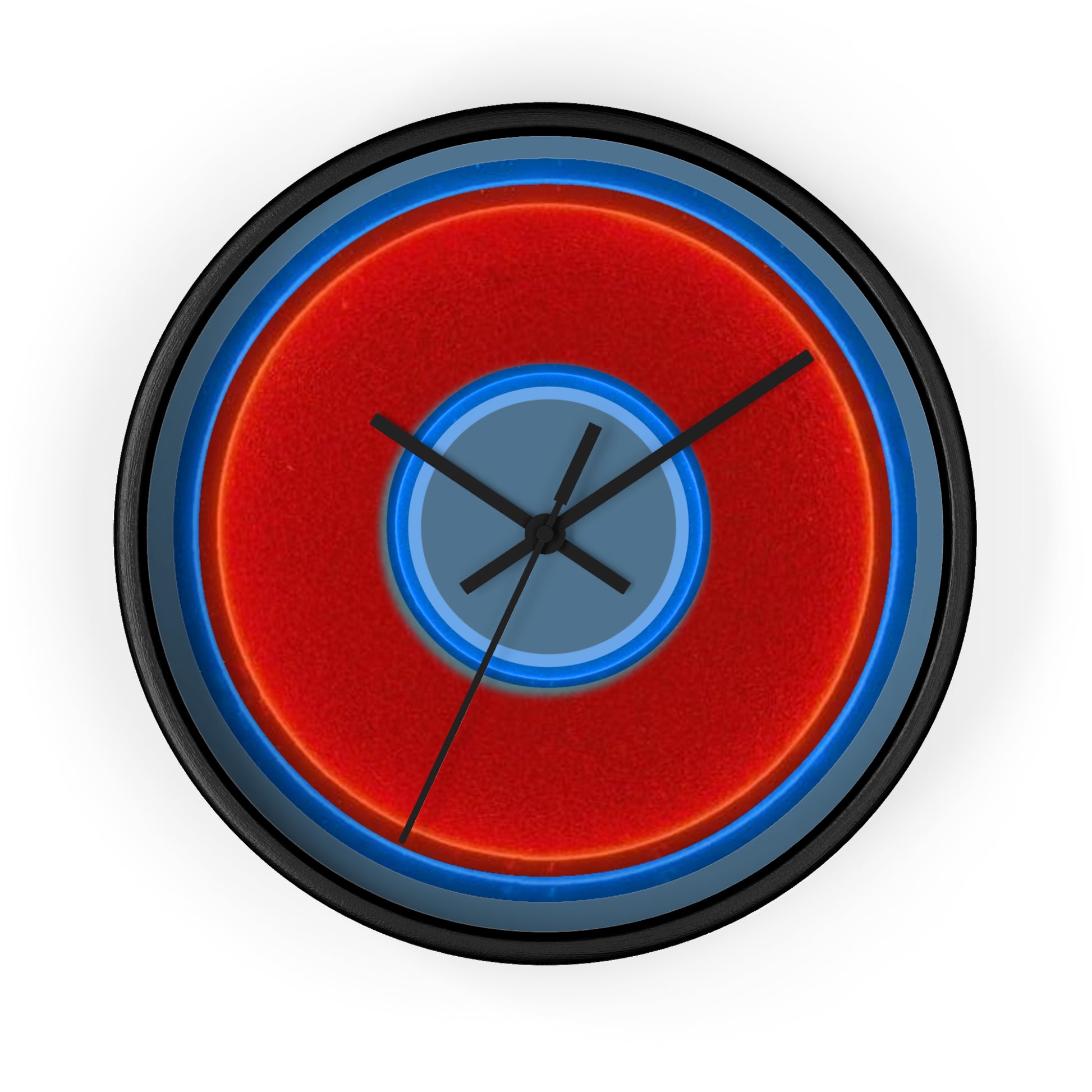 Lumpy Wall Clock - red vivid donut - variant 6 w/steel blue background