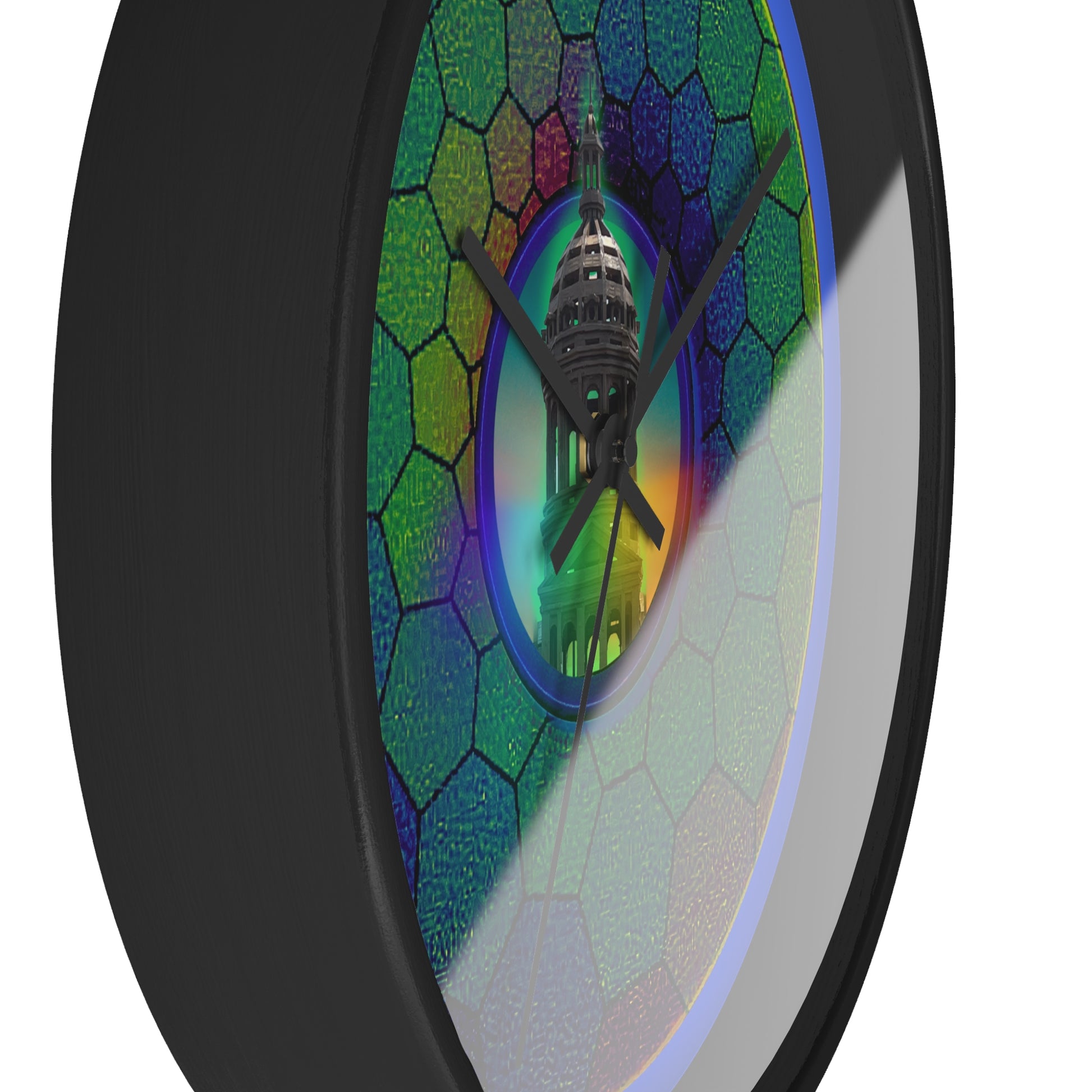 Lumpy Wall Clock - "Save the Mondegreen City Hall Clock Tower" - green hexadonut w/royal blue background