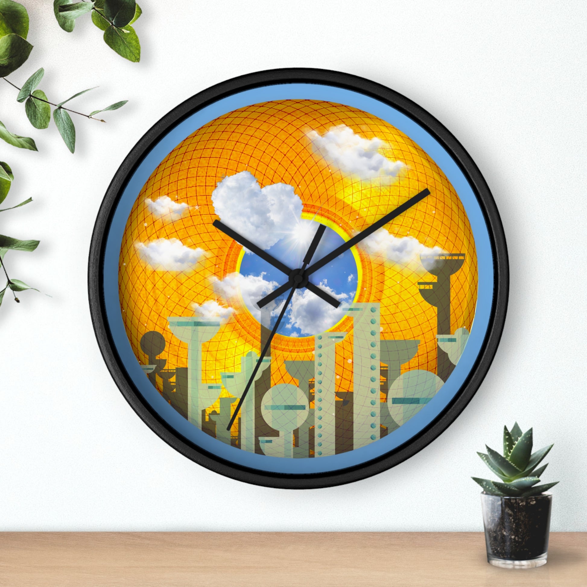 Lumpy Wall Clock - "The Golden Age of Donuts" - gold symmetrical donut w/light blue background