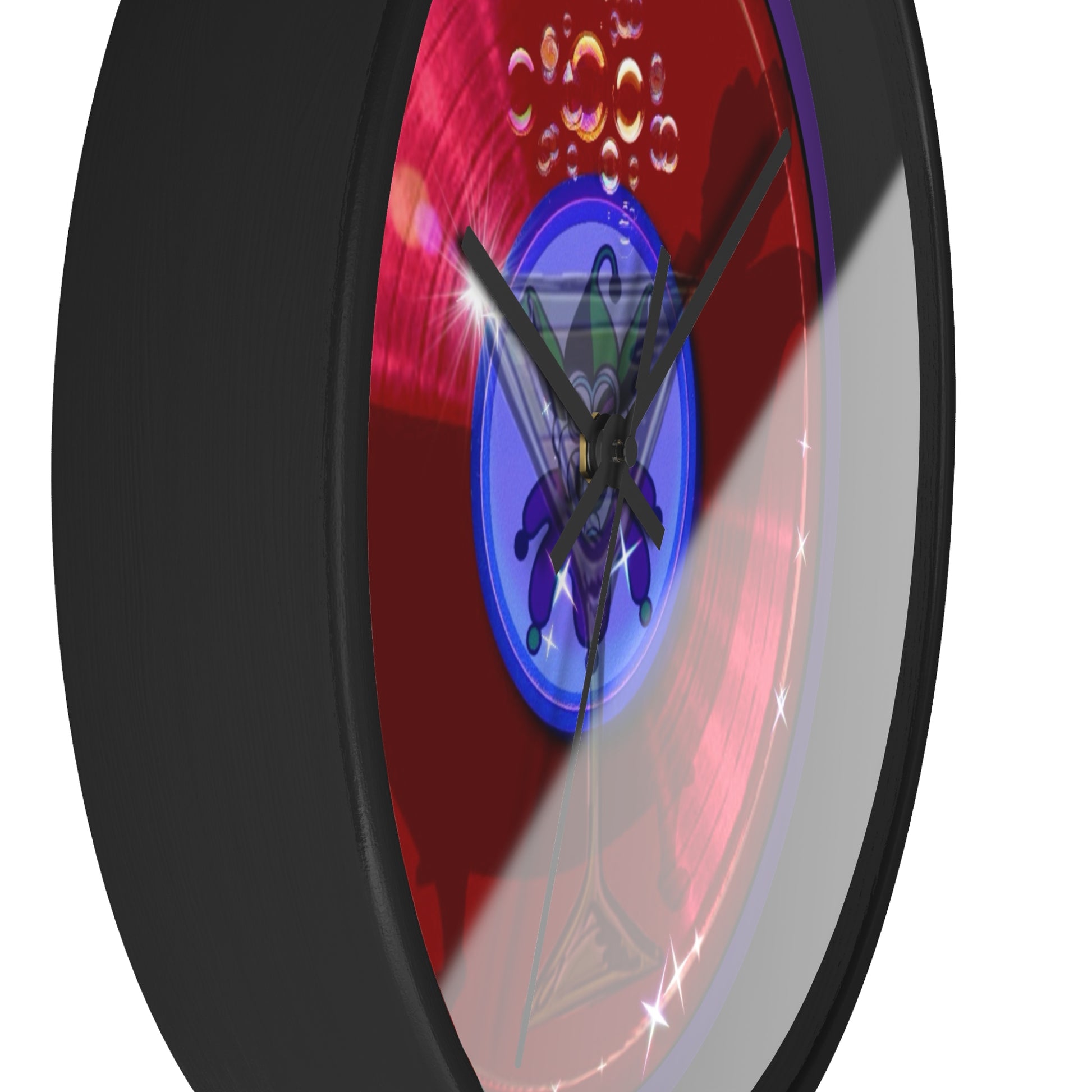 Lumpy Wall Clock - "The Joker's Personal Donut Clocks" - variant 3 - vivid red donut w/midnight blue background
