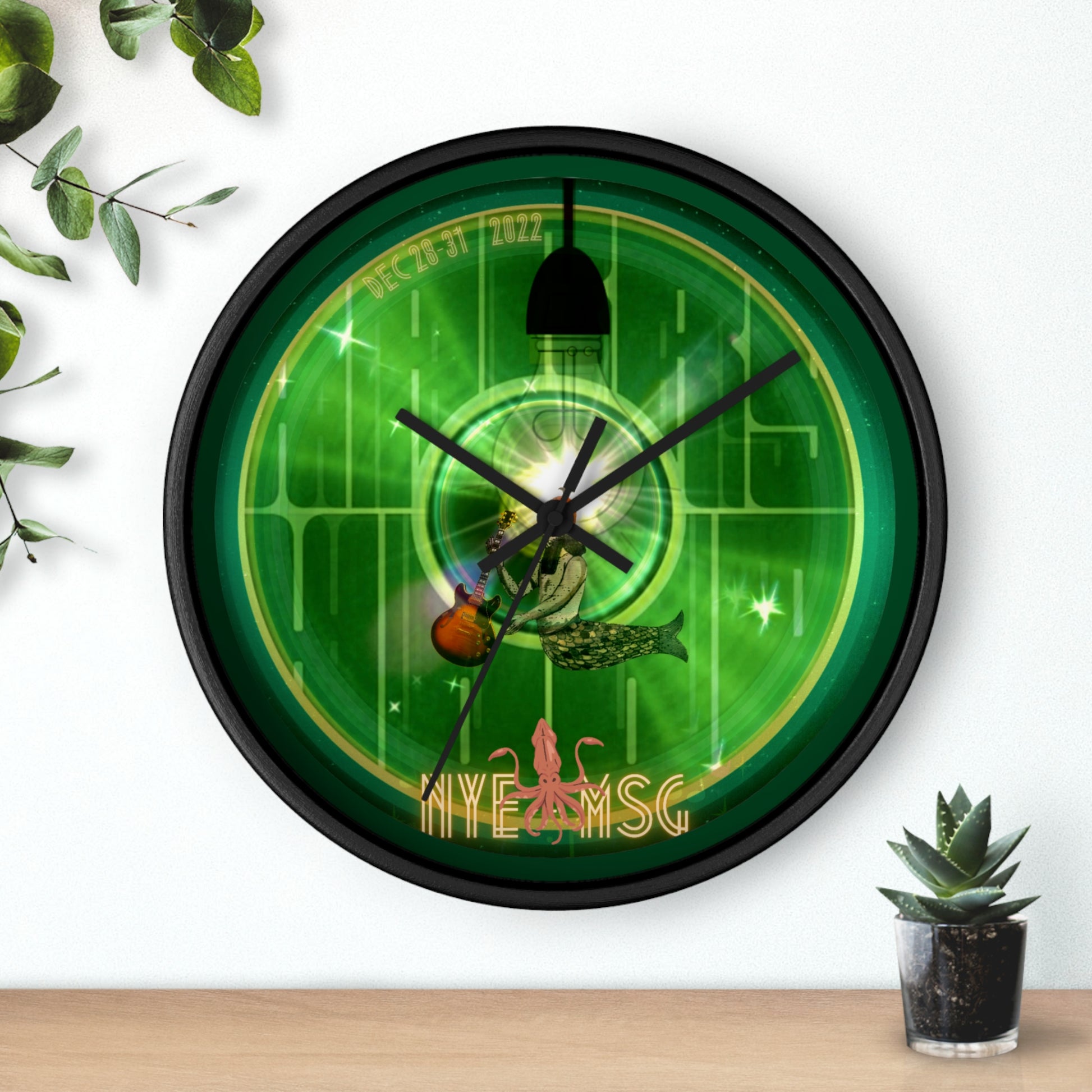 Lumpy Wall Clock - "There Was a party Dec 28-31 2022 in NYC" - vivid green word donut w/deep pond green background