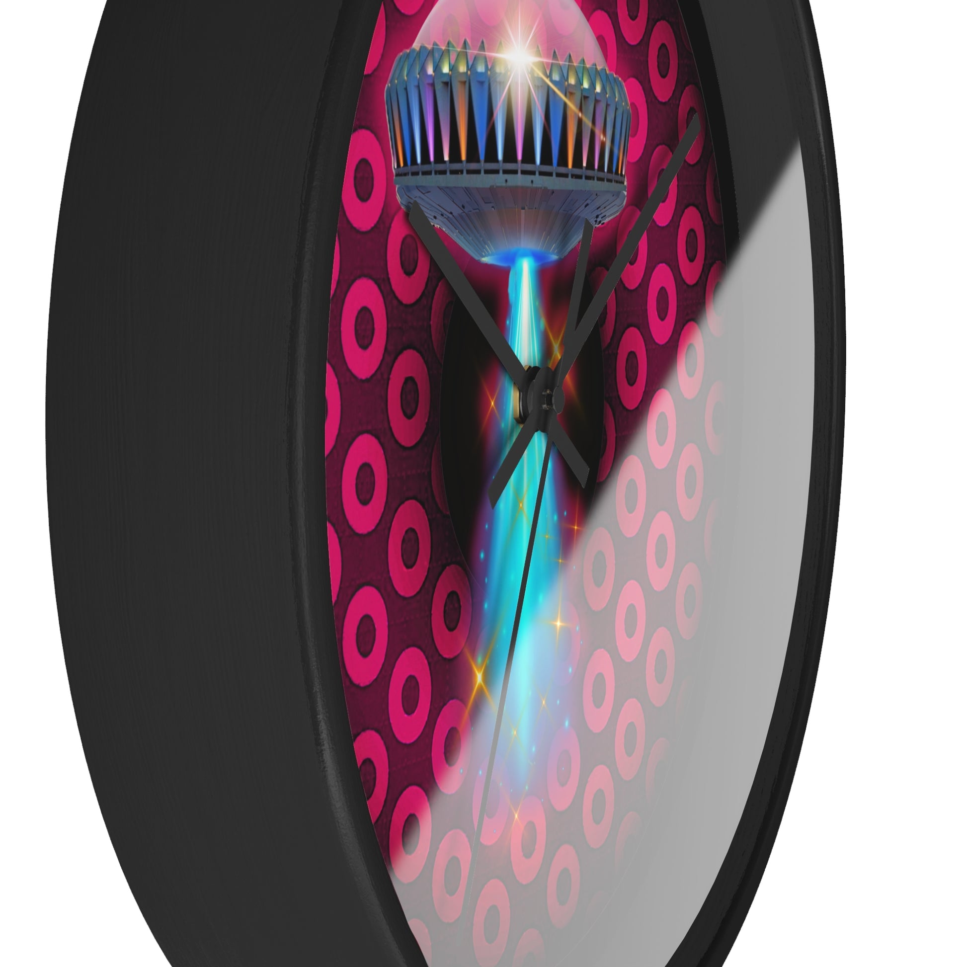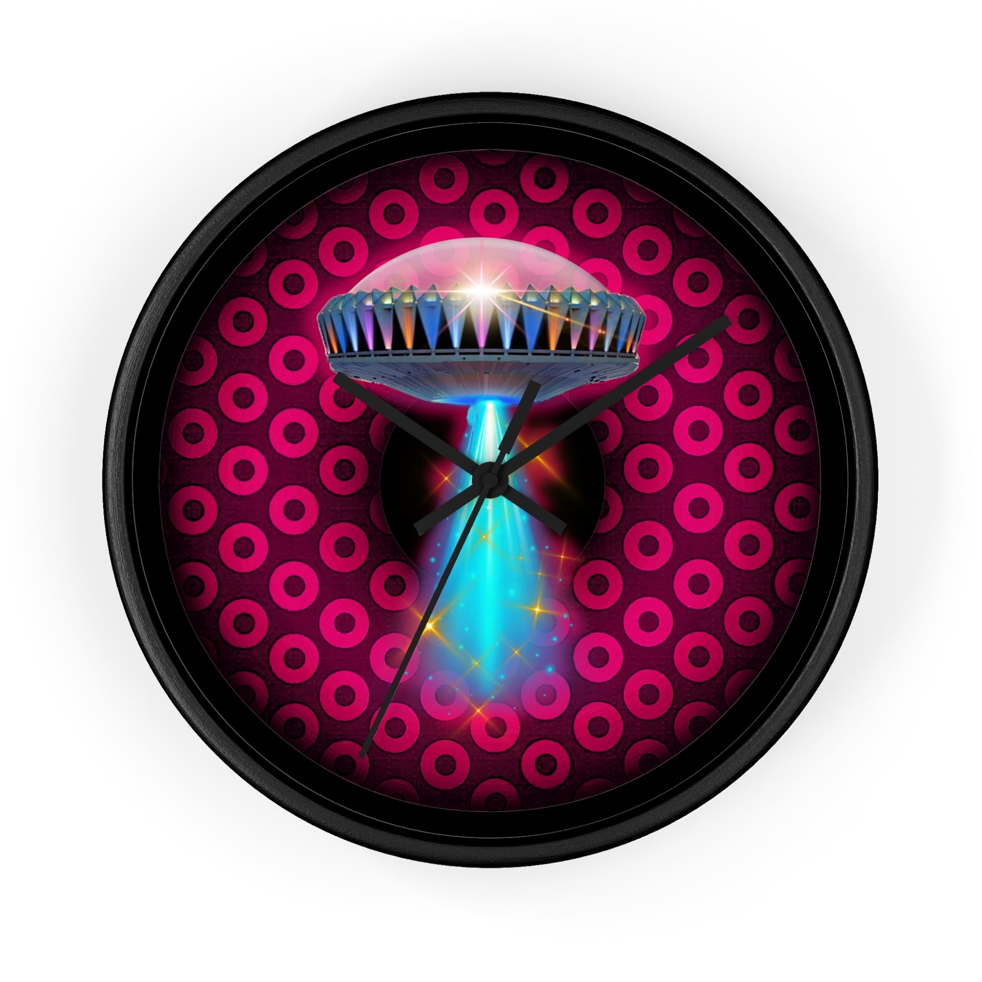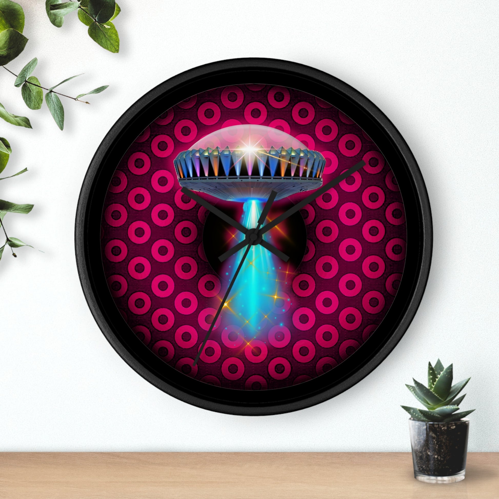 Lumpy Wall Clock - "They Serve Donuts on the Mothership now" - variant 2 - paradoxical dark red/red donut w/black background