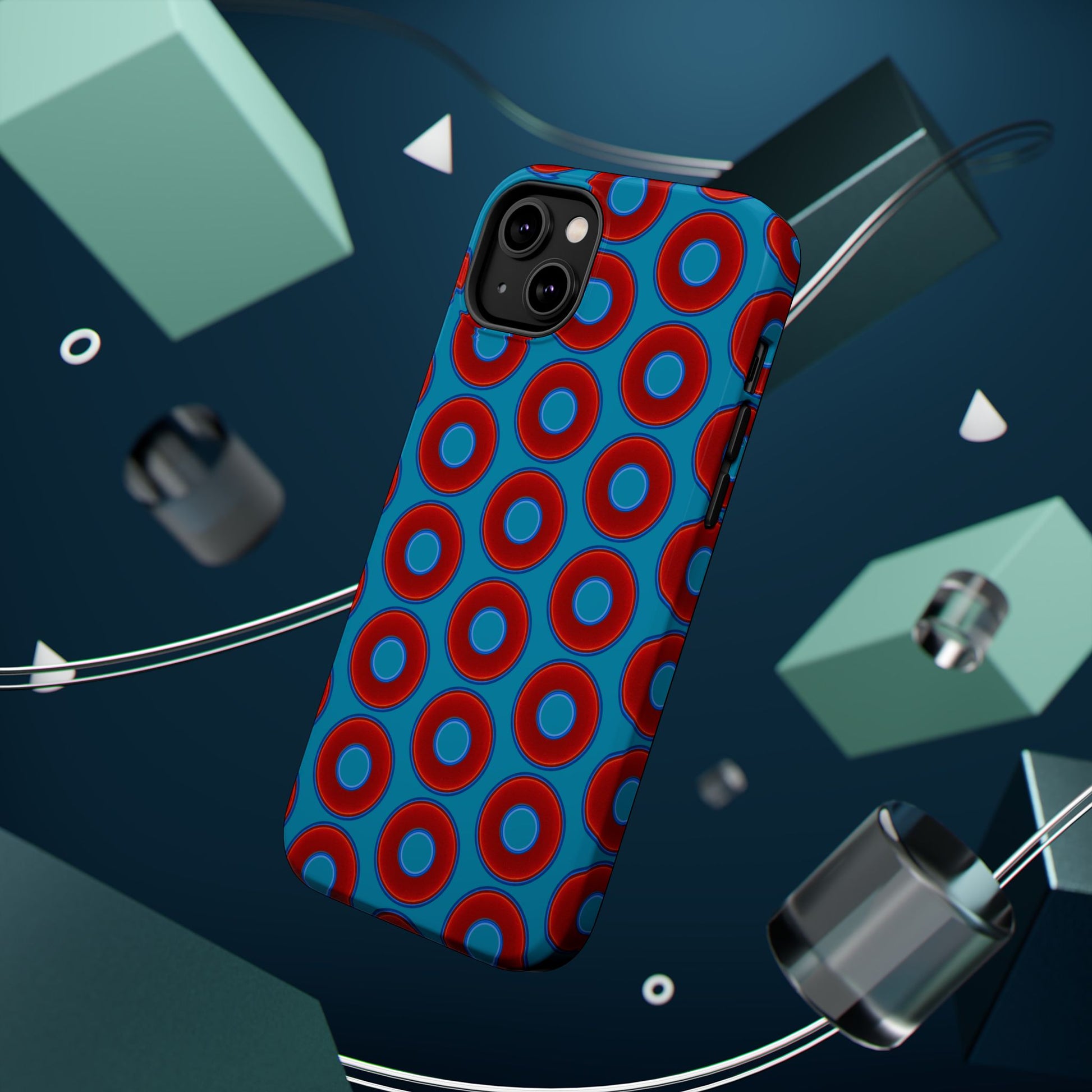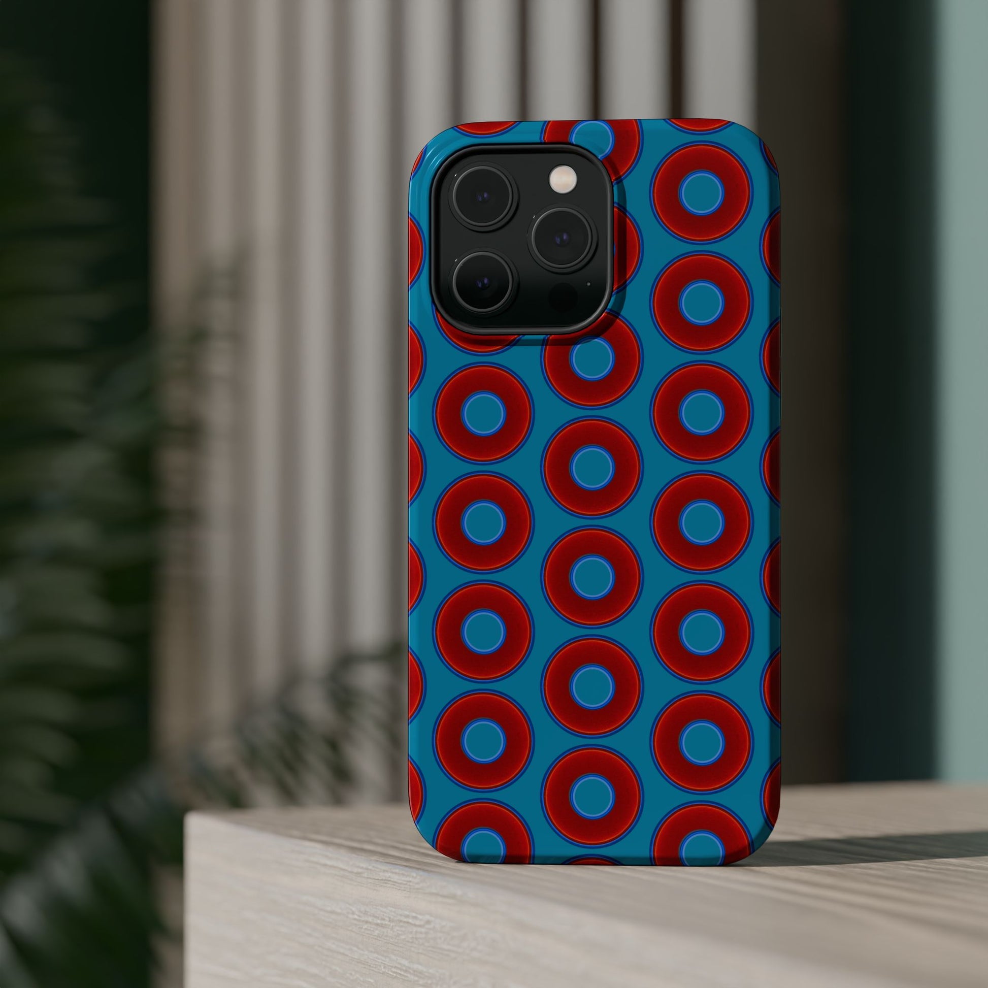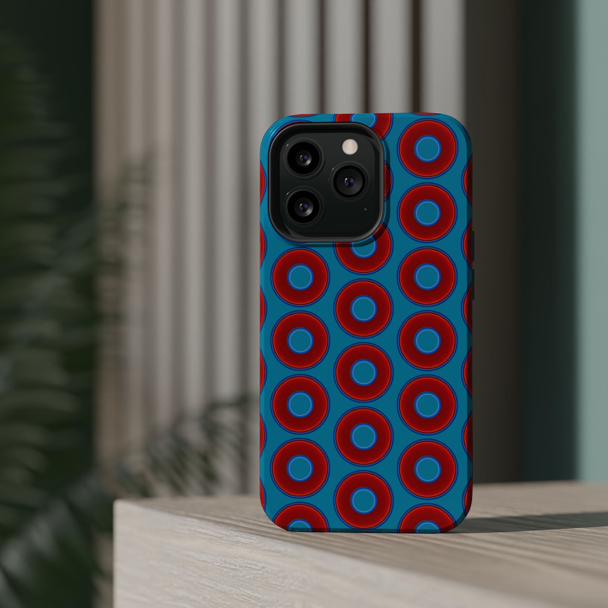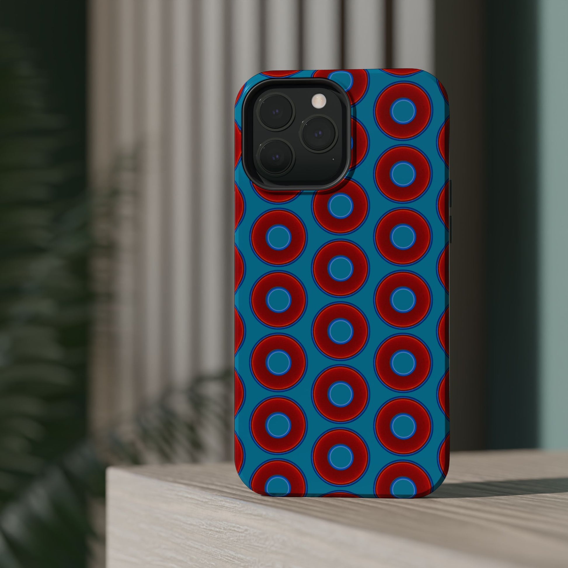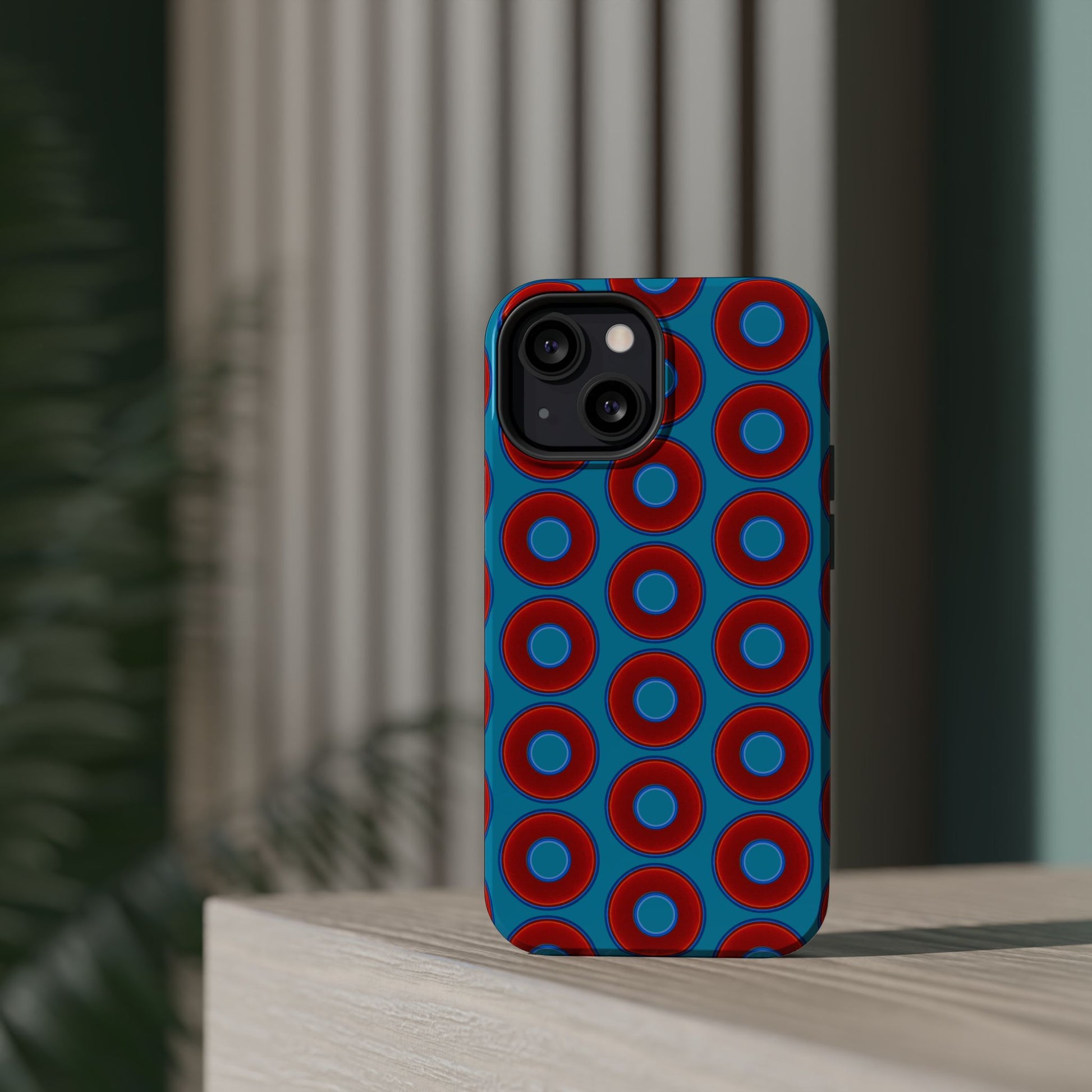 Magnetic Tough Donut Case - red vivid donut print w/aquamarine blue background