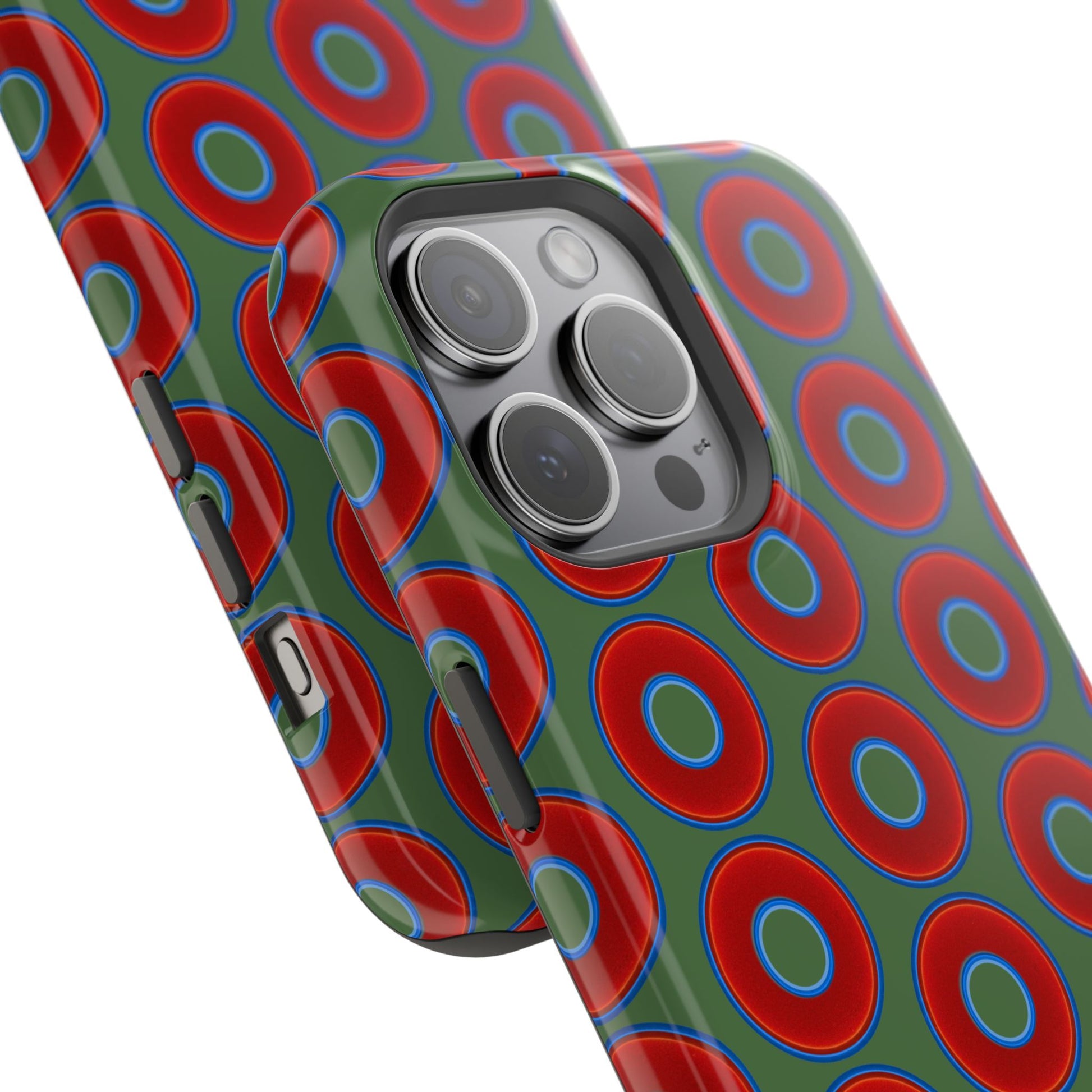 Magnetic Tough Donut Case - red vivid donut print w/dark Fenway green background