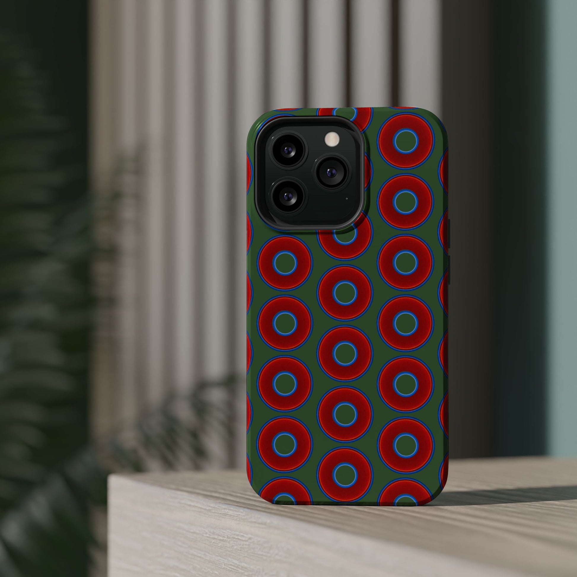 Magnetic Tough Donut Case - red vivid donut print w/dark green background
