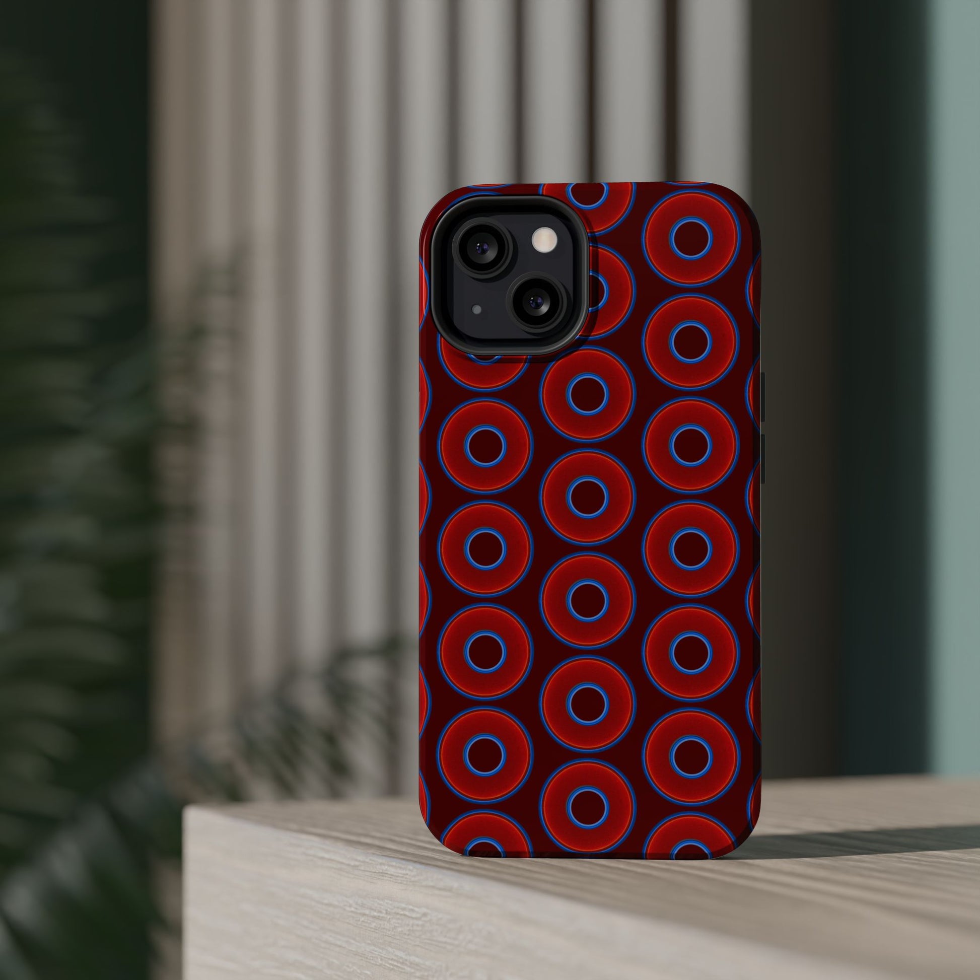 Magnetic Tough Donut Case - red vivid donut print w/dark red background