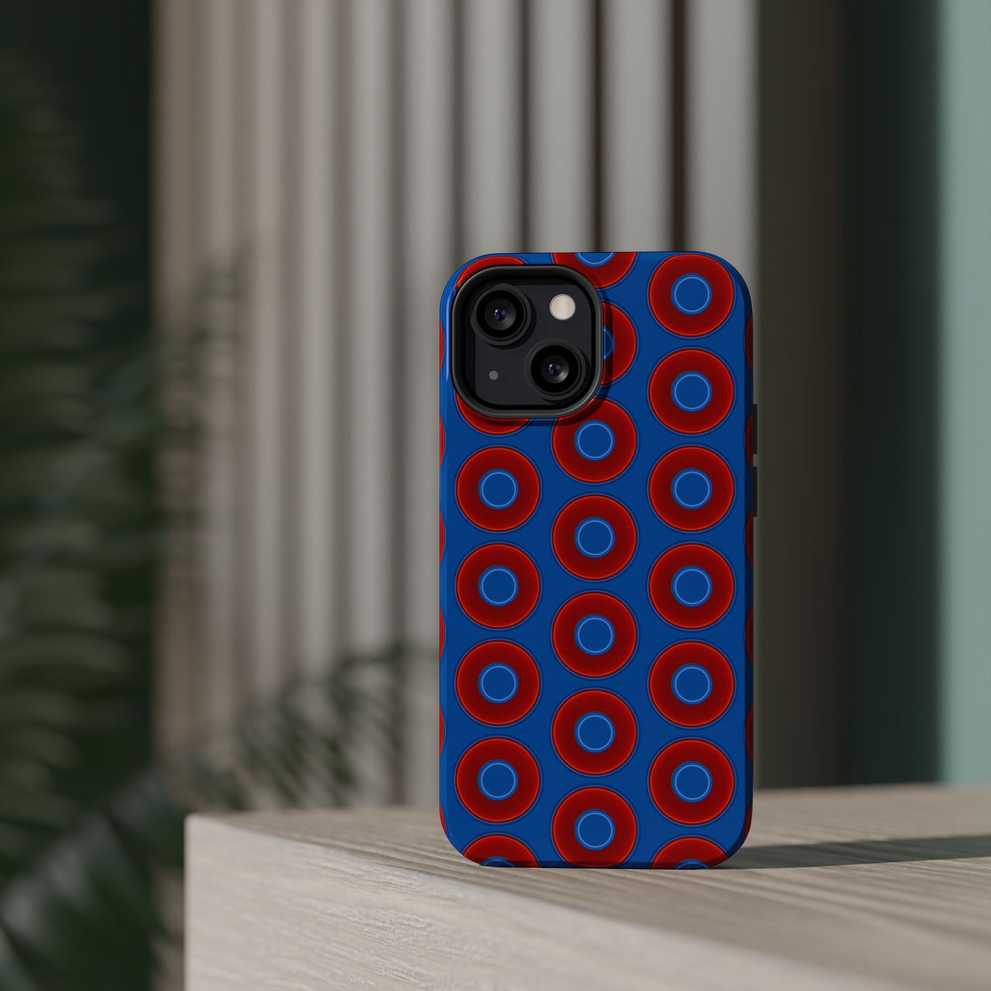 Magnetic Tough Donut Case - red vivid donut print w/dark royal blue background