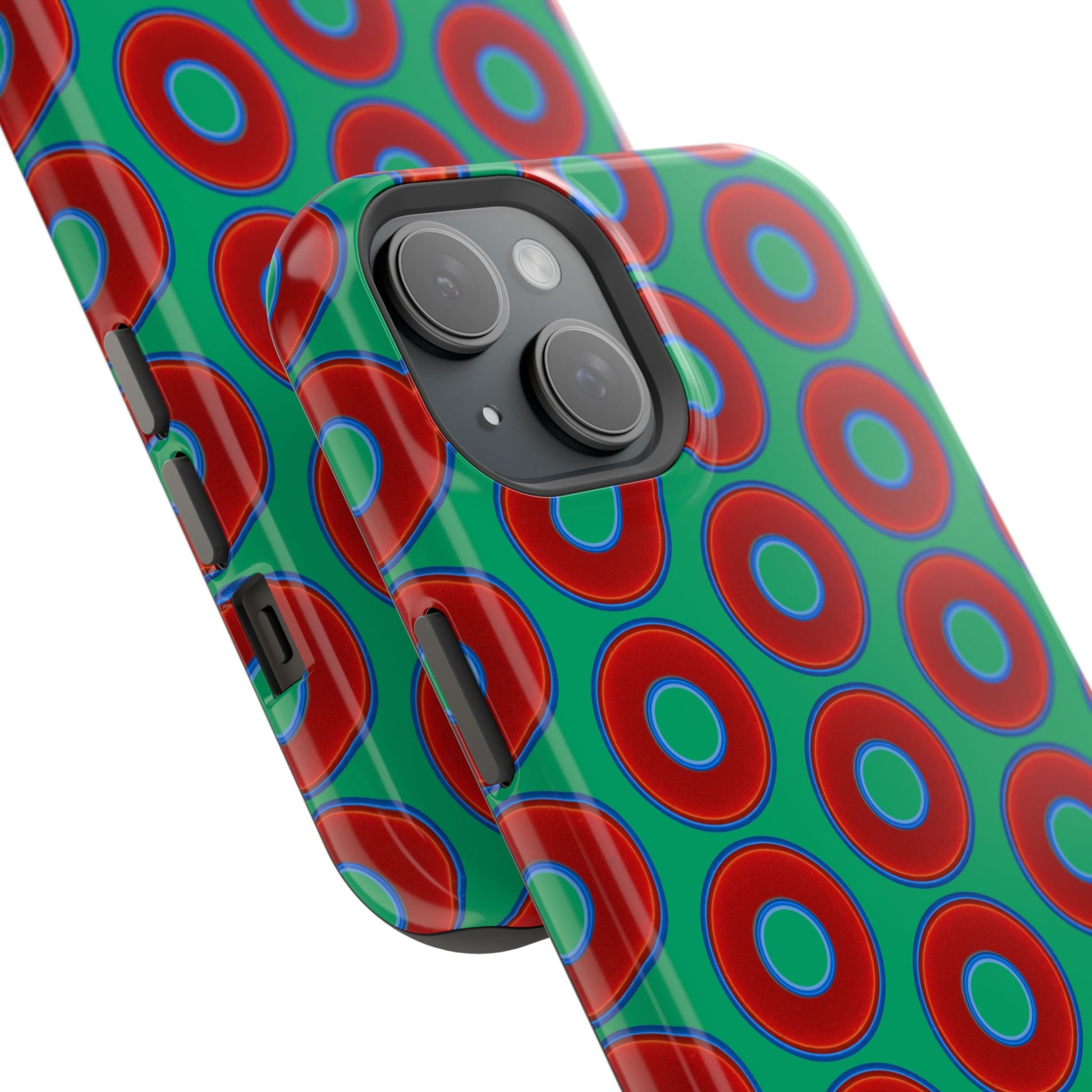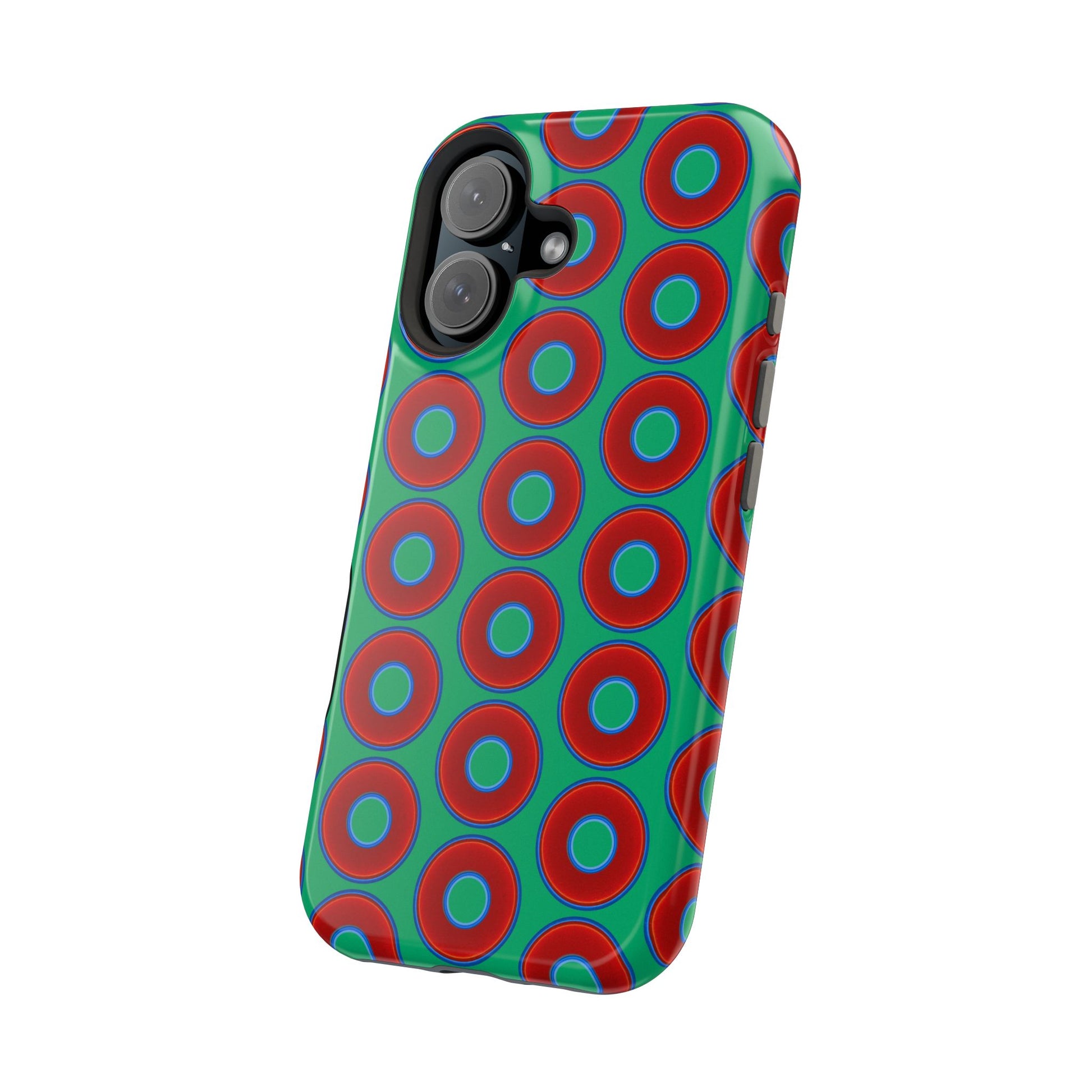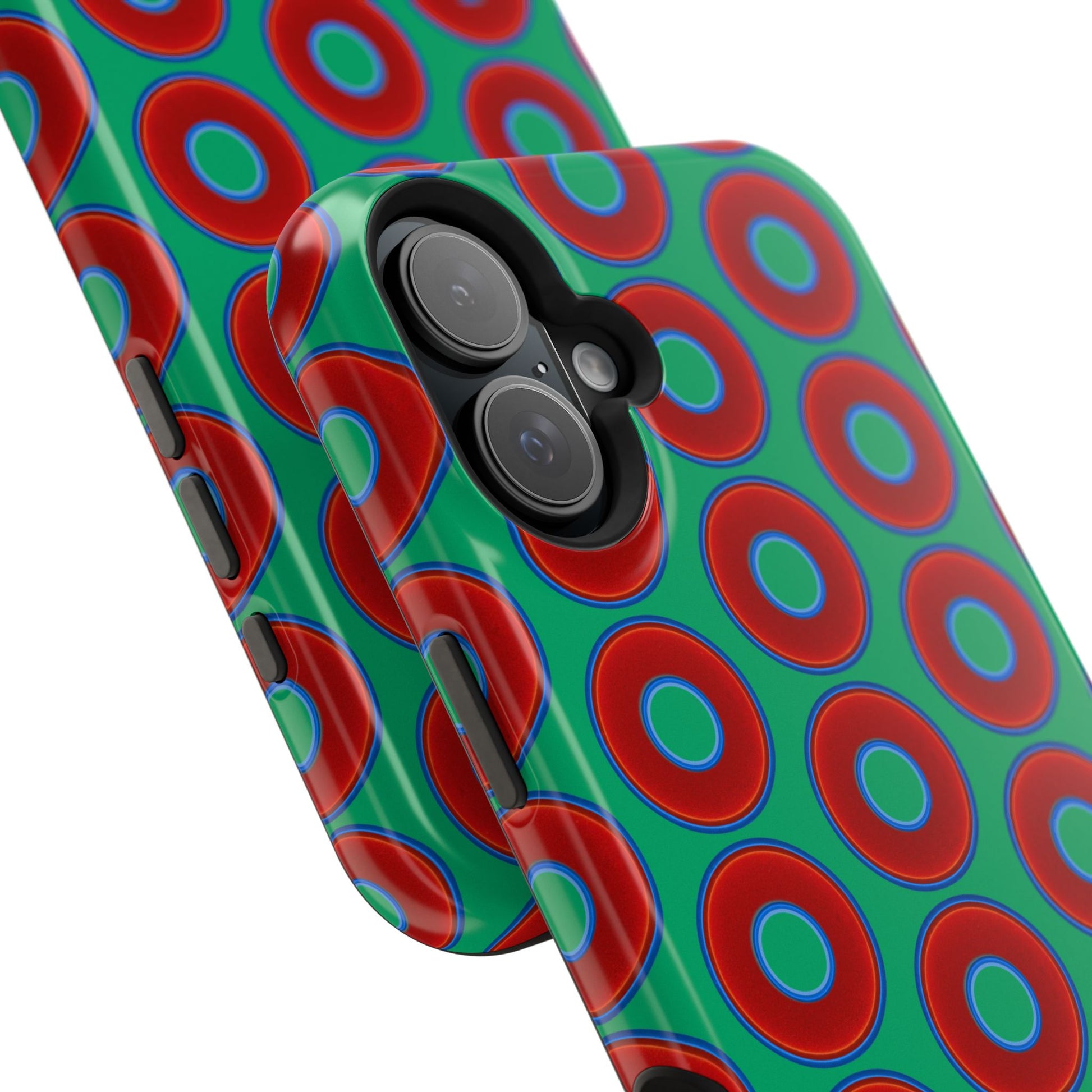 Magnetic Tough Donut Case - red vivid donut print w/jade green background