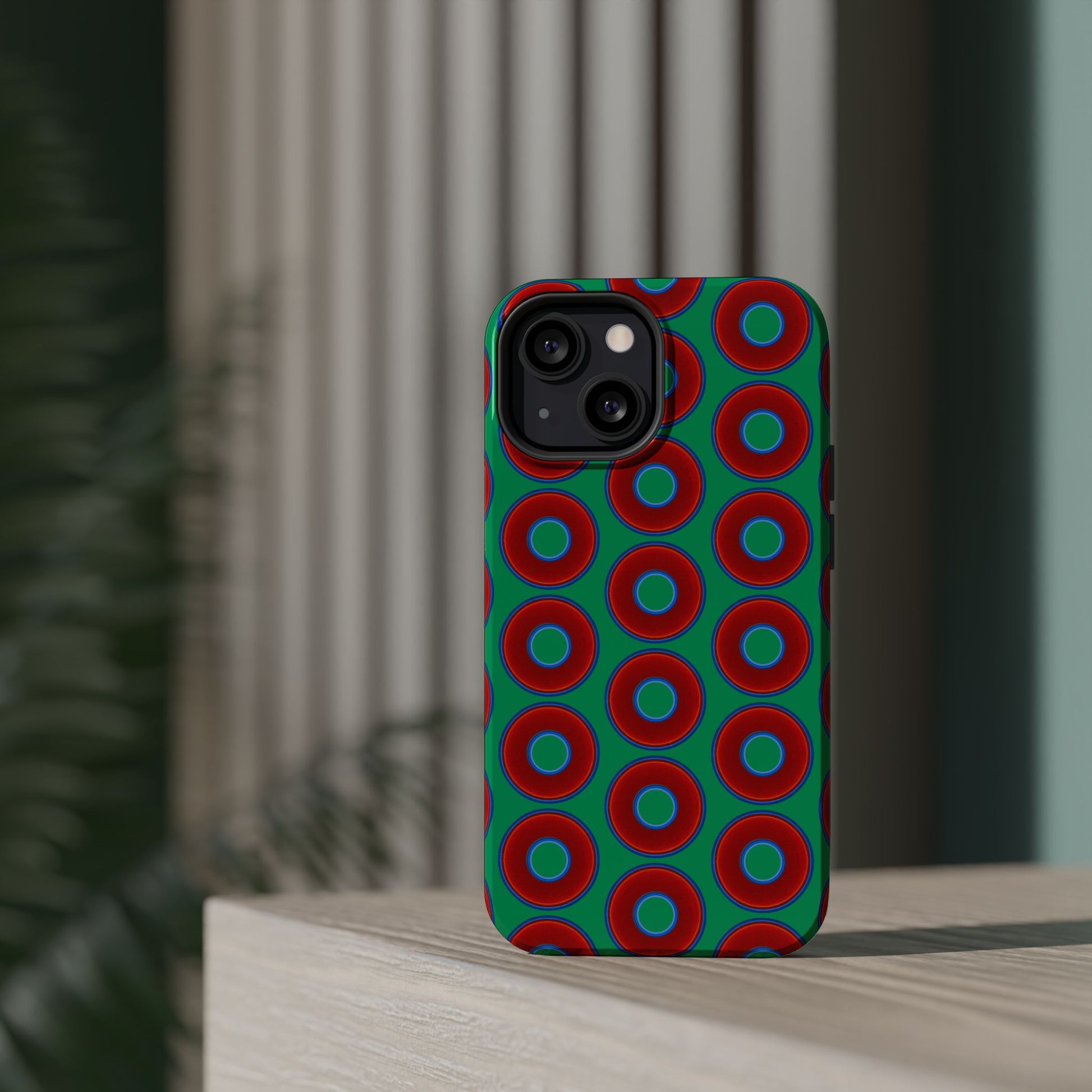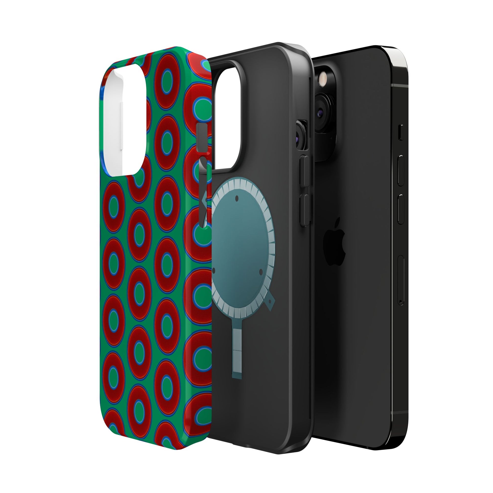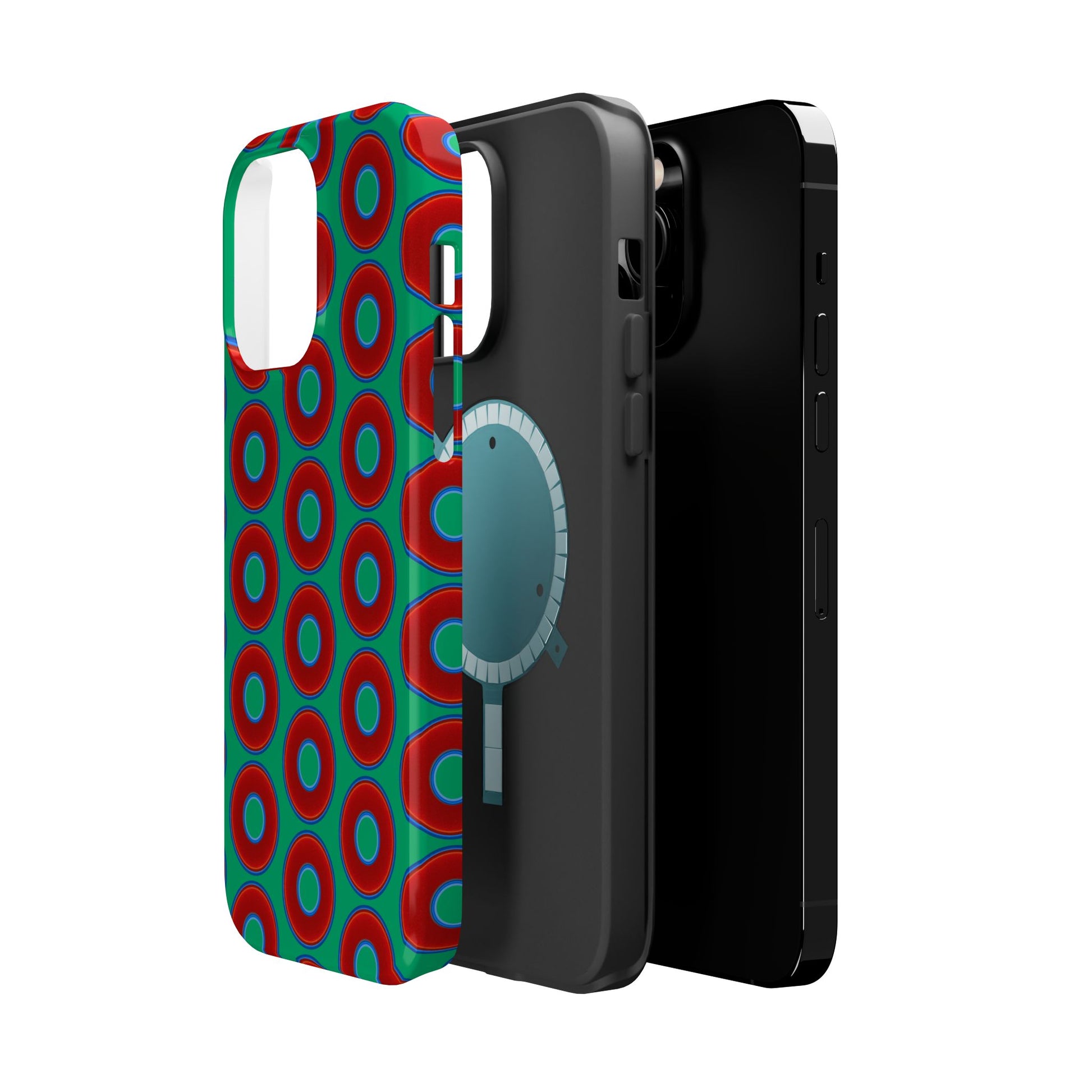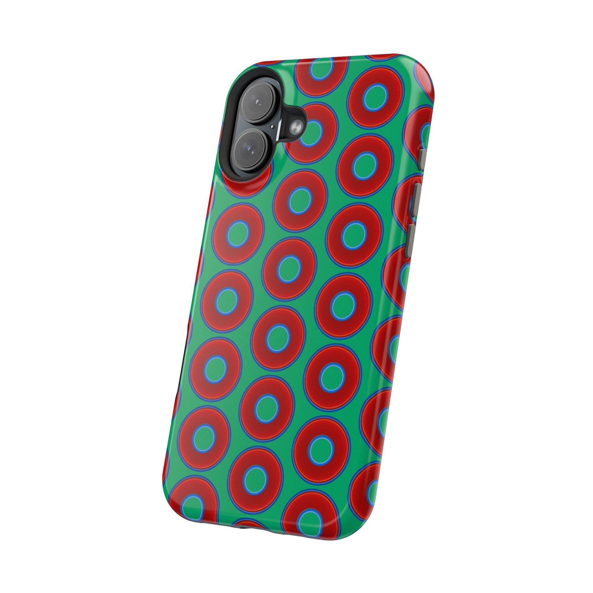 Magnetic Tough Donut Case - red vivid donut print w/jade green background