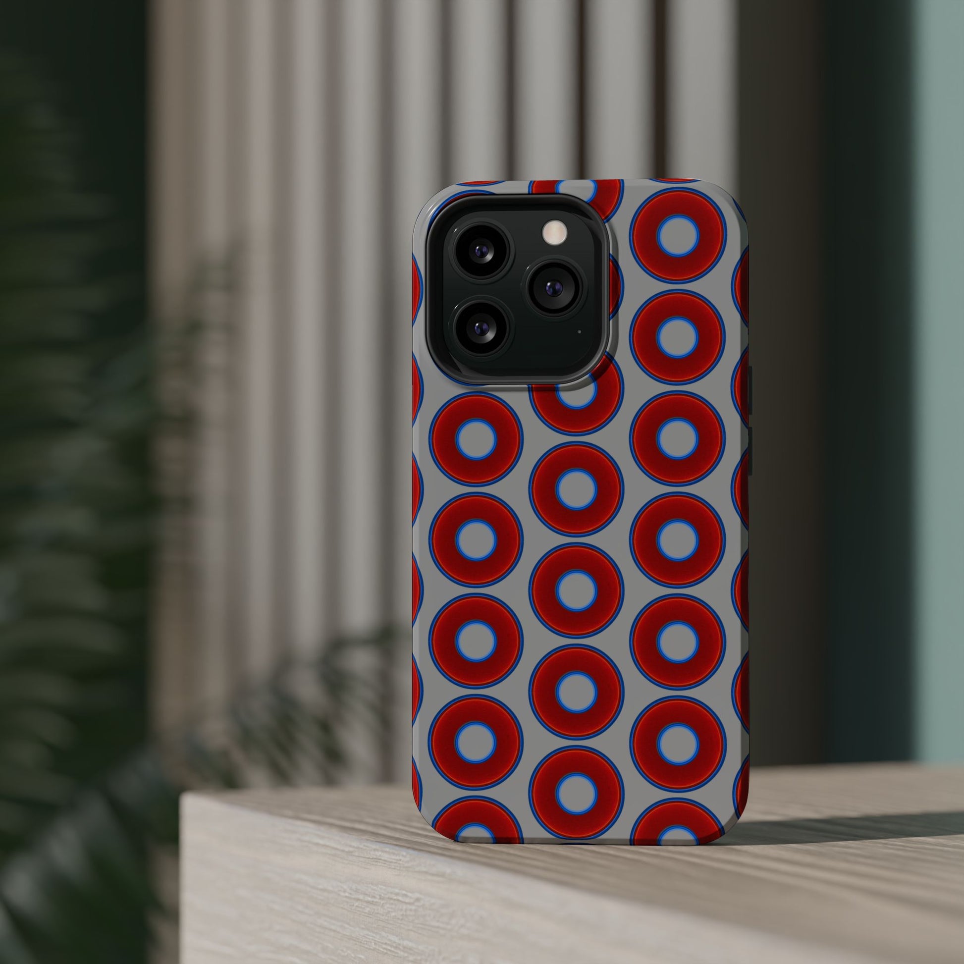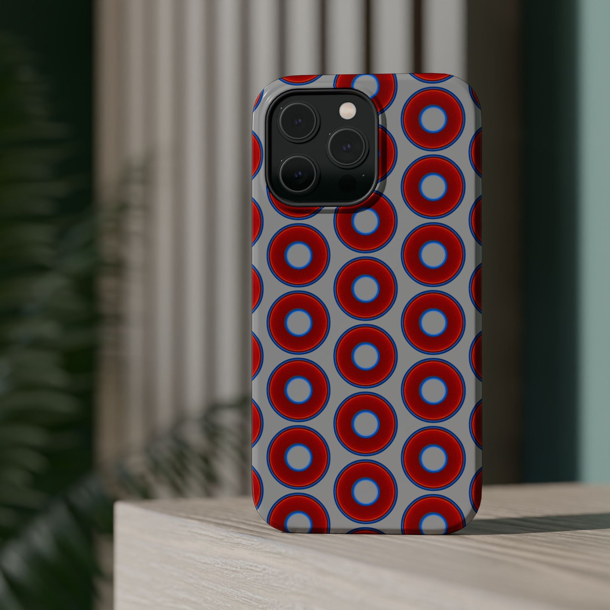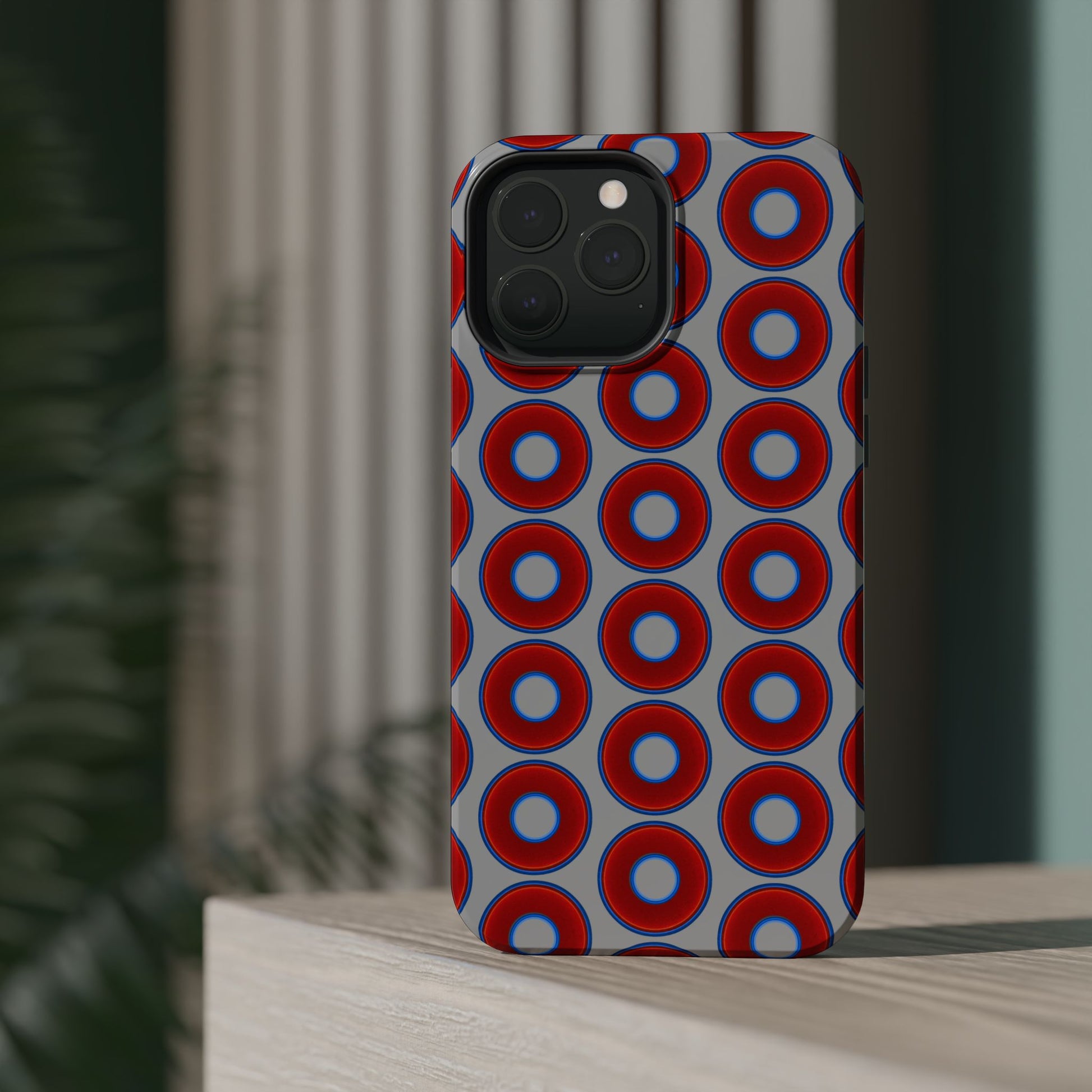 Magnetic Tough Donut Case - red vivid donut print w/light gray background
