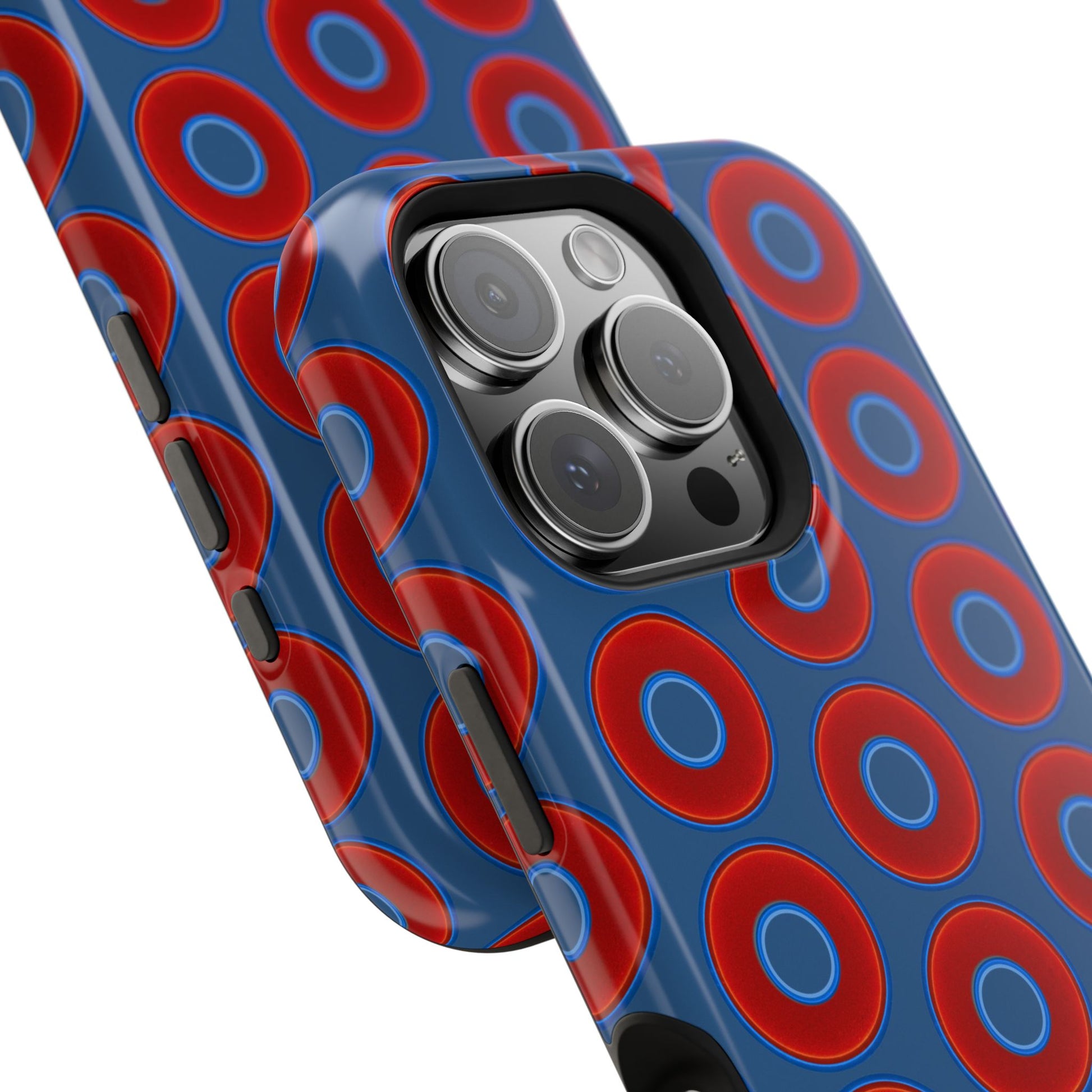 Magnetic Tough Donut Case - red vivid donut print w/light navy blue background