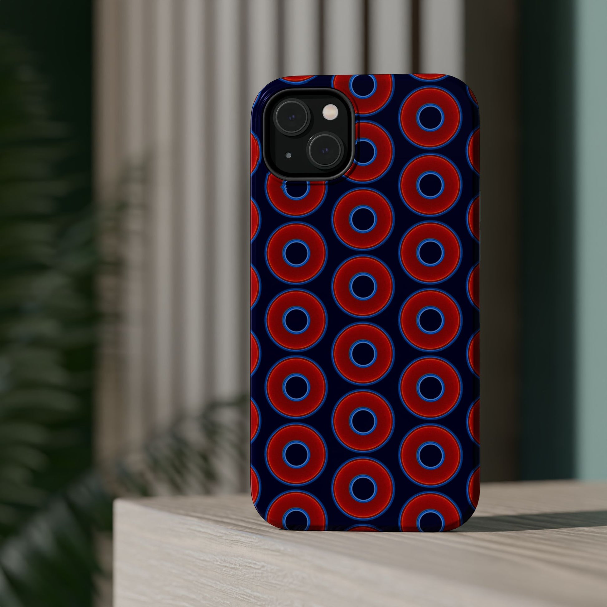 Magnetic Tough Donut Case - red vivid donut print w/midnight blue background