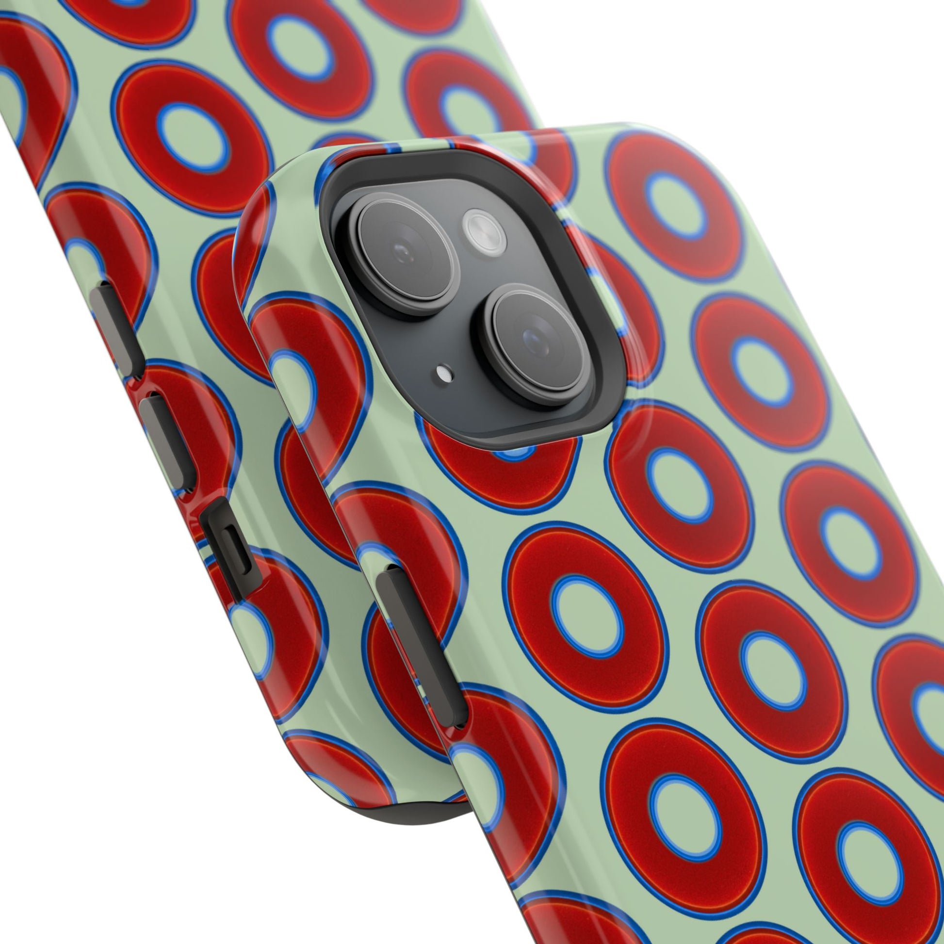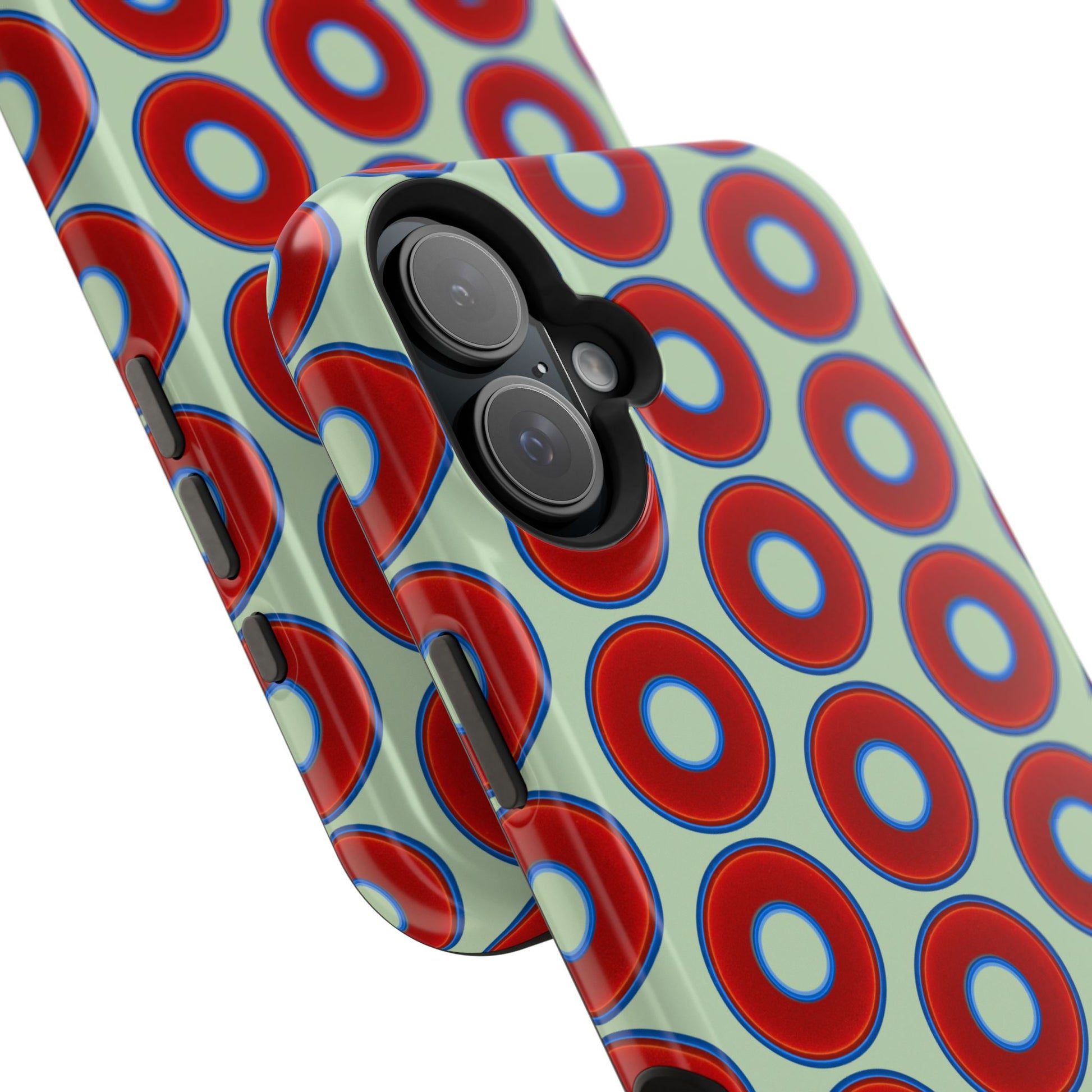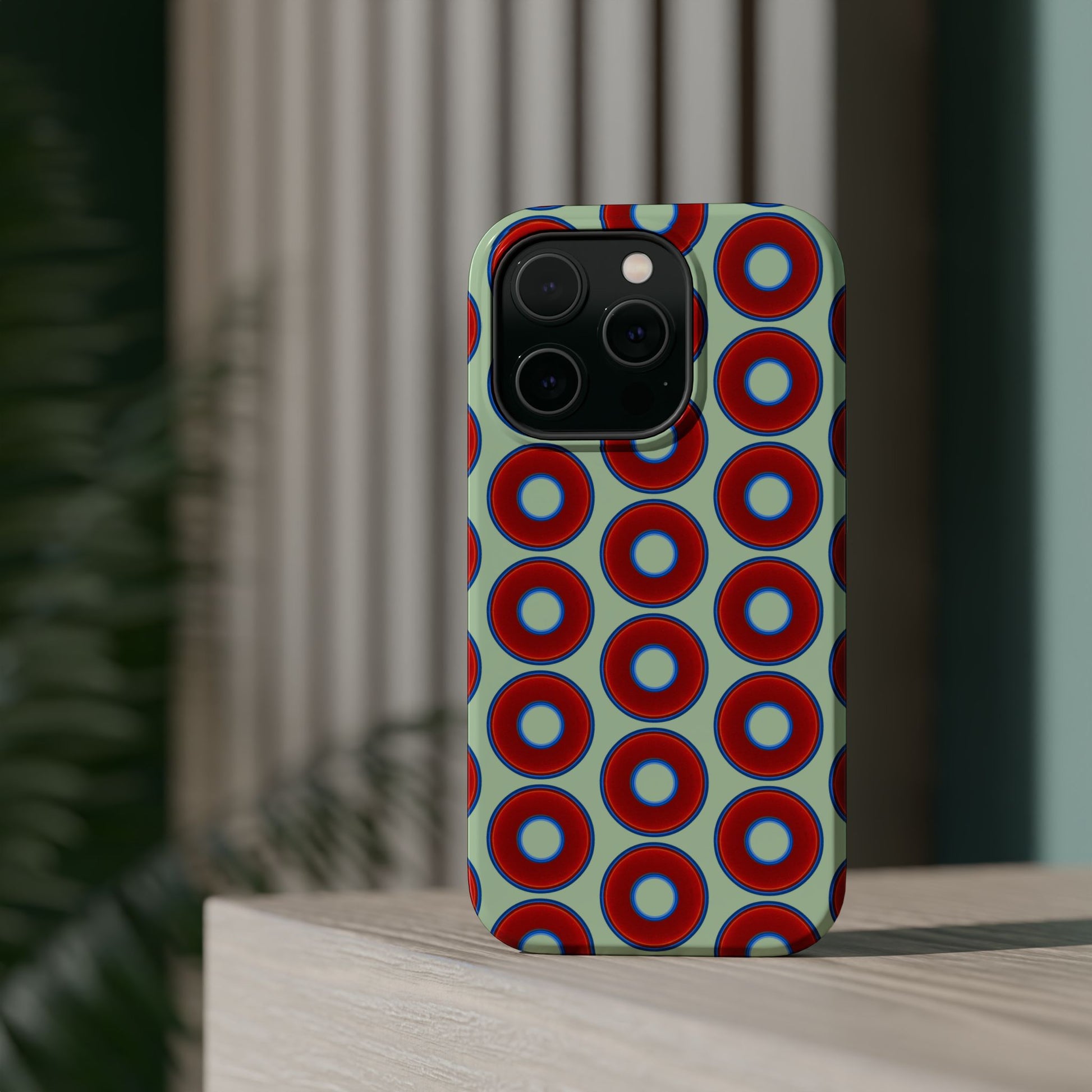 Magnetic Tough Donut Case - red vivid donut print w/seafoam green background