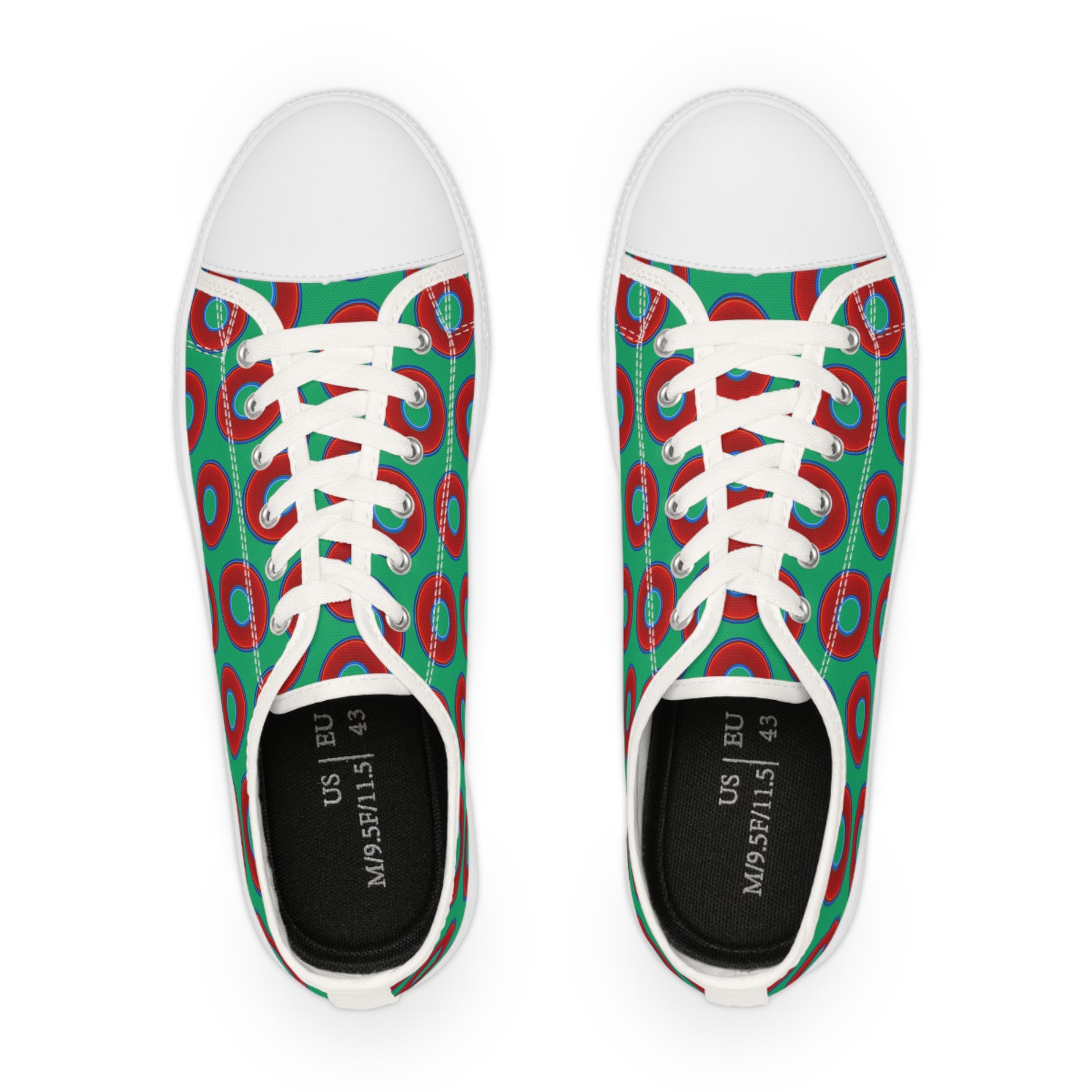 Men's - Chuck Taylors - large vivid red donut print w/jade green background