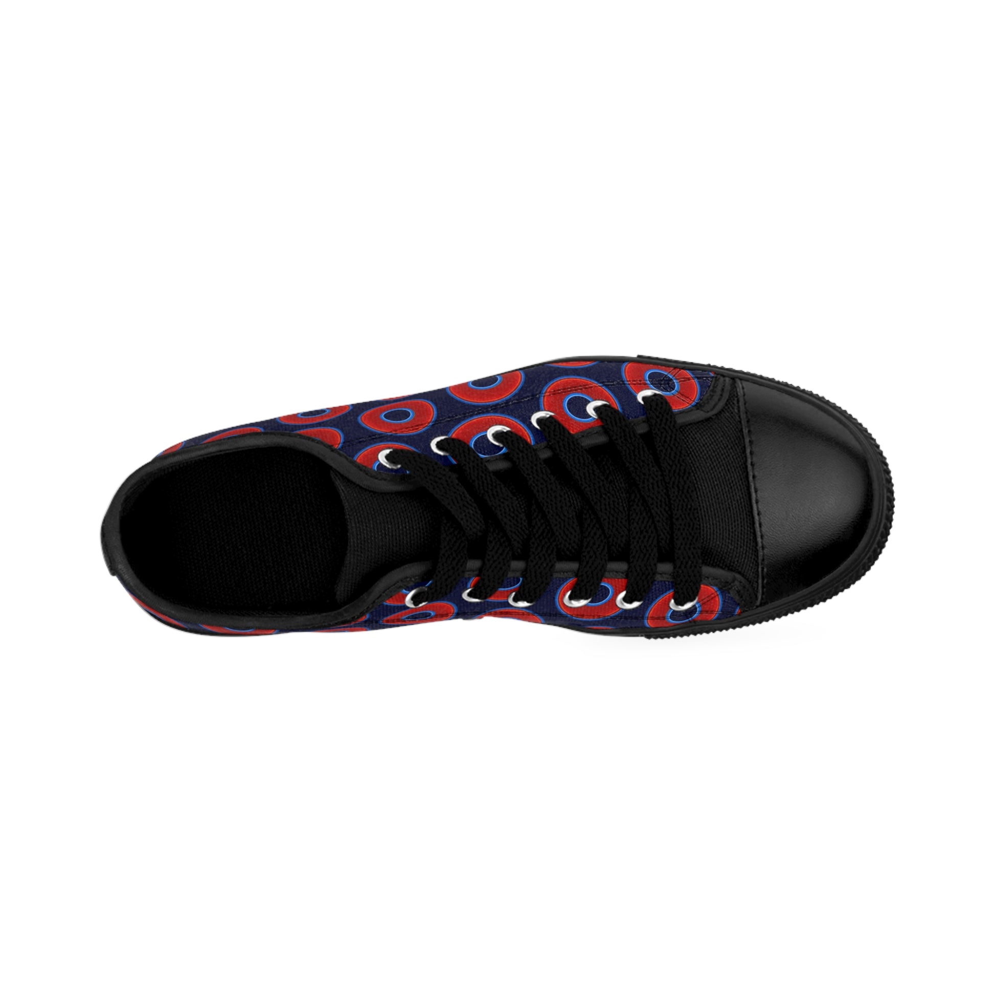 Men's Cushiony Convectors - Low Top - large red vivid donut print w/dark navy blue background