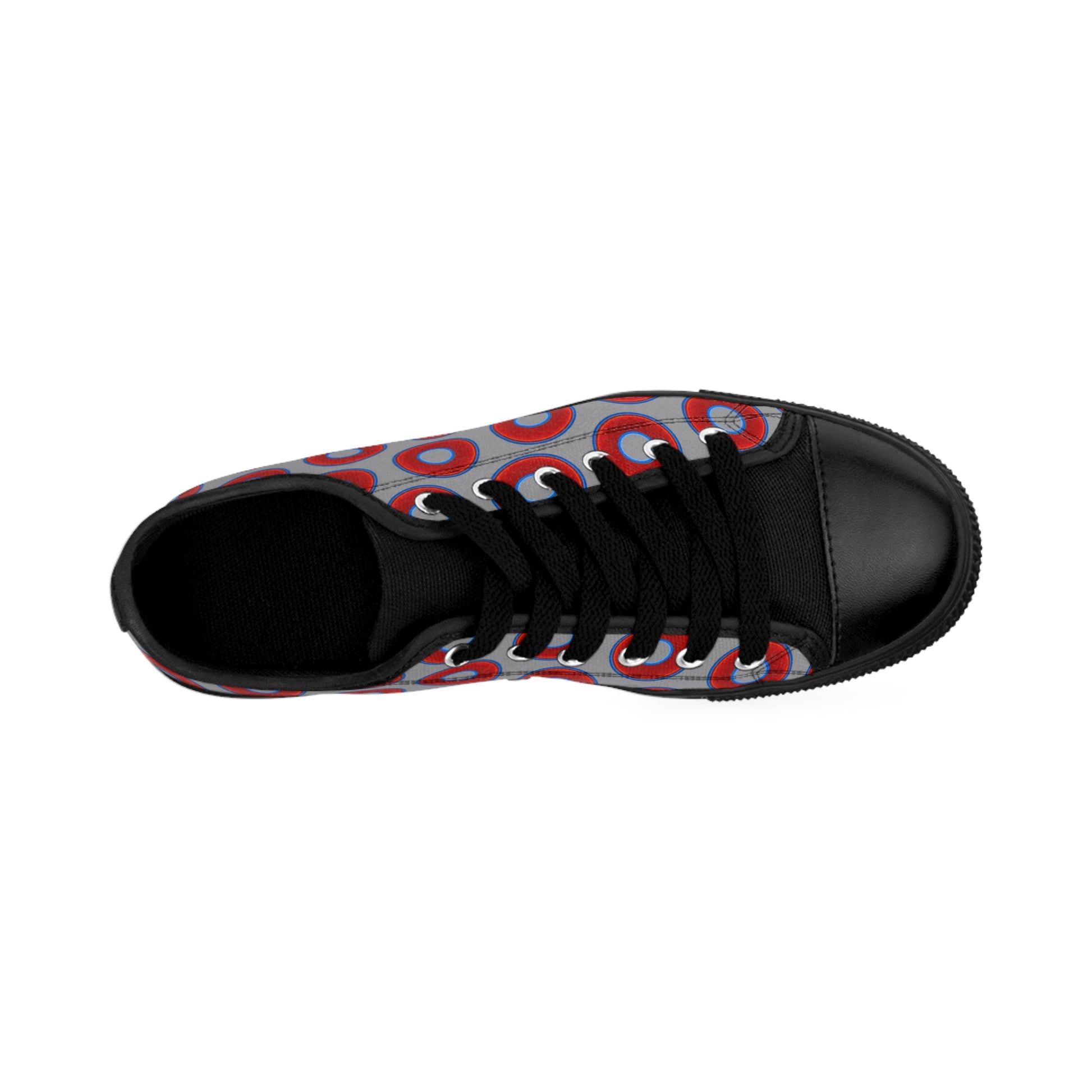 Men's Cushiony Convectors - Low Top - large red vivid donut print w/gray background