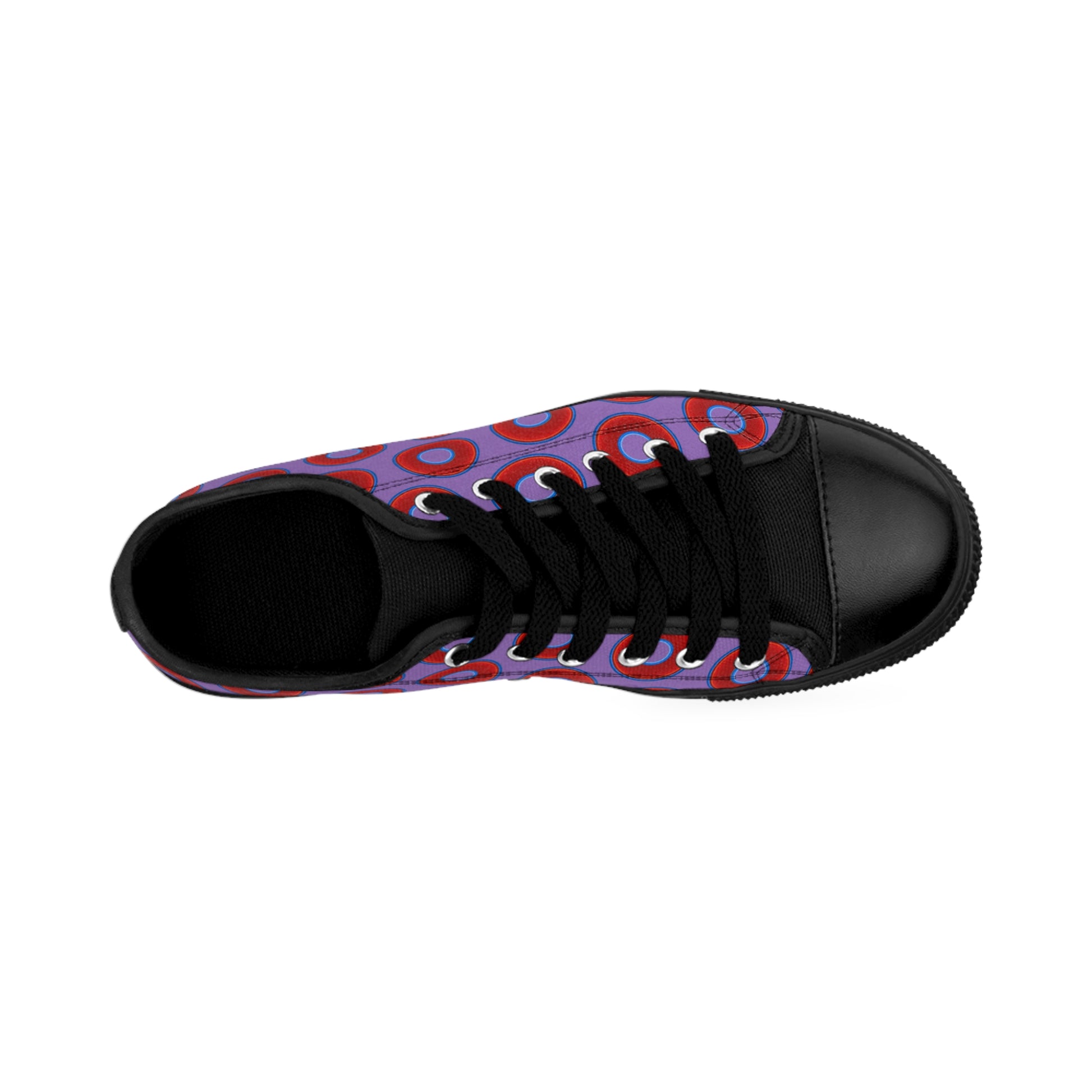 Men's Cushiony Convectors - Low Top - large red vivid donut print w/light purple background