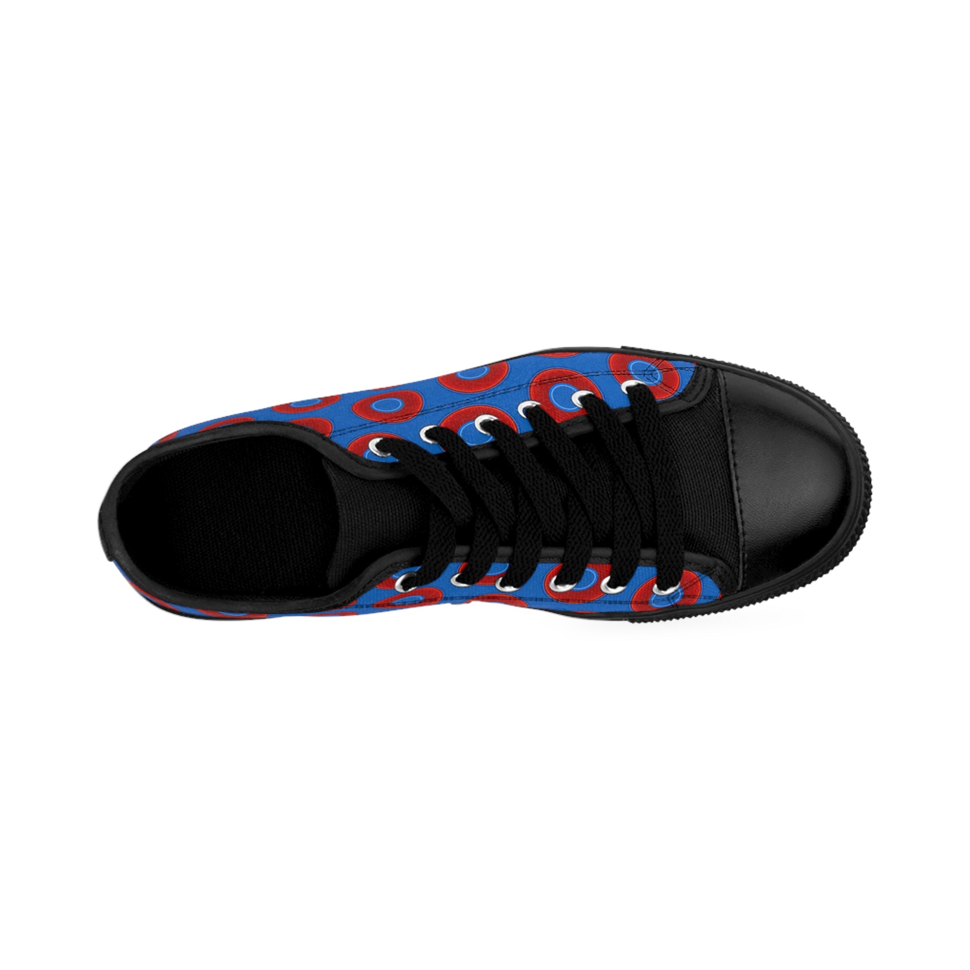 Men's Cushiony Convectors - Low Top - large red vivid donut print w/dark royal blue background