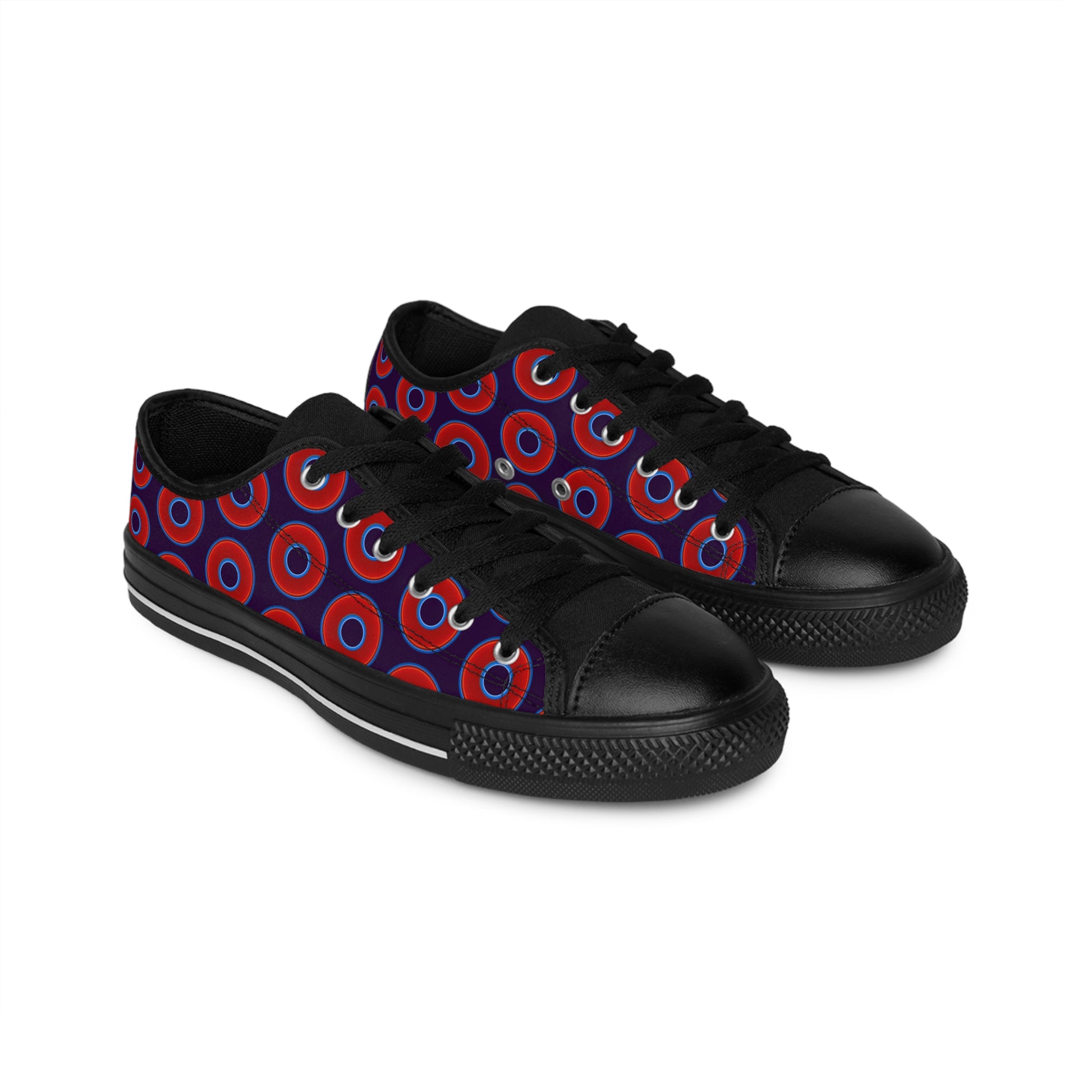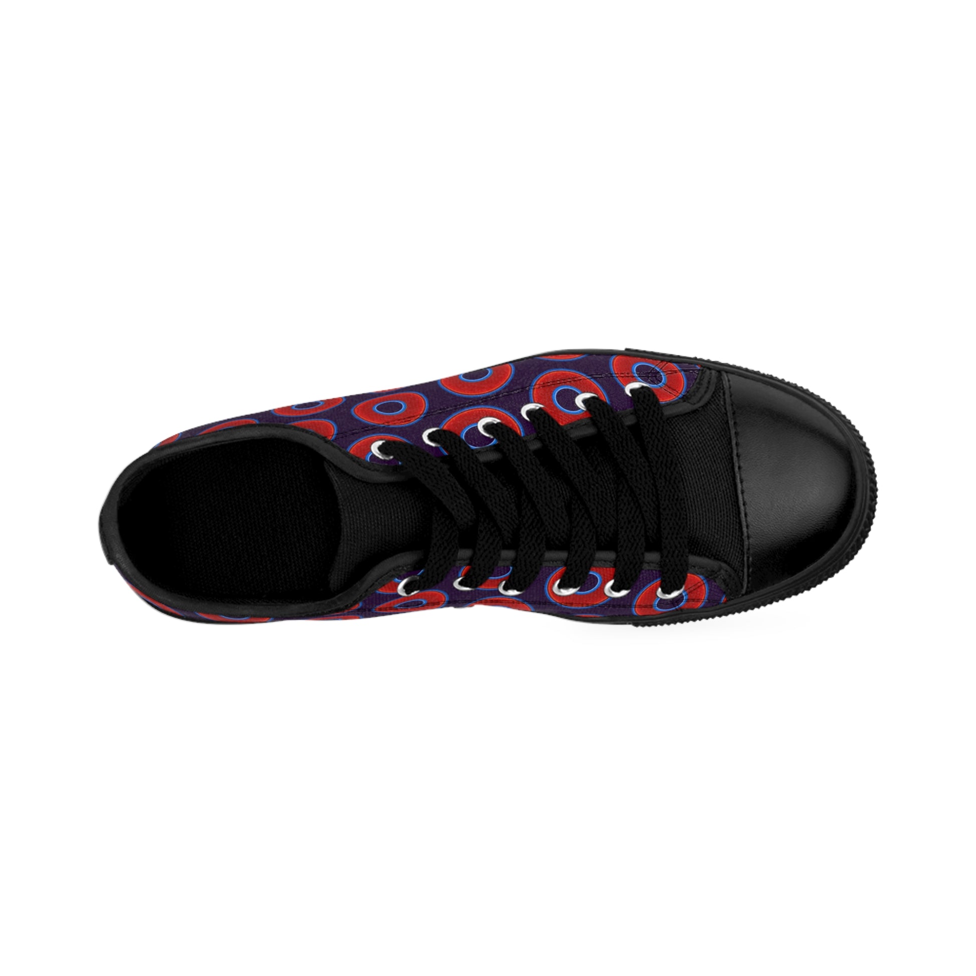 Men's Cushiony Convectors - Low Top - large red vivid donut print w/midnight purple background