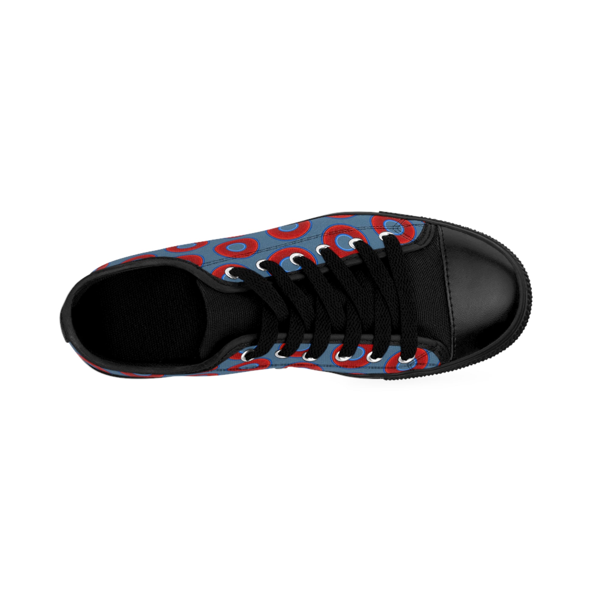 Men's Cushiony Convectors - Low Top - large red vivid donut print w/steel blue background